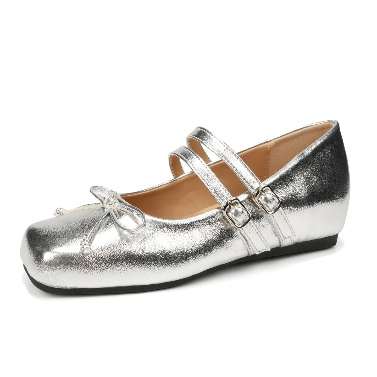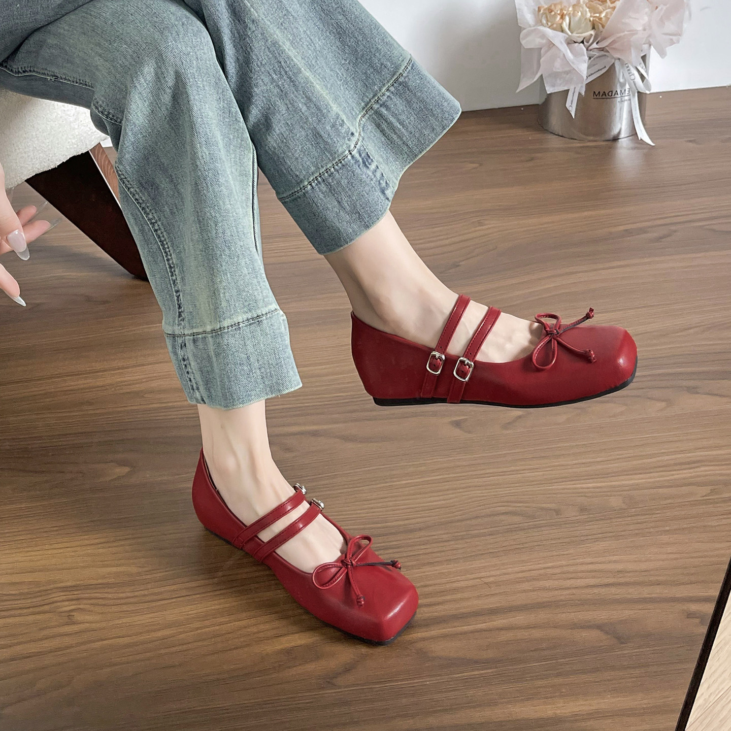 法式内增高玛丽珍真皮单鞋女2025新款不累脚方头蝴蝶结浅口平底鞋