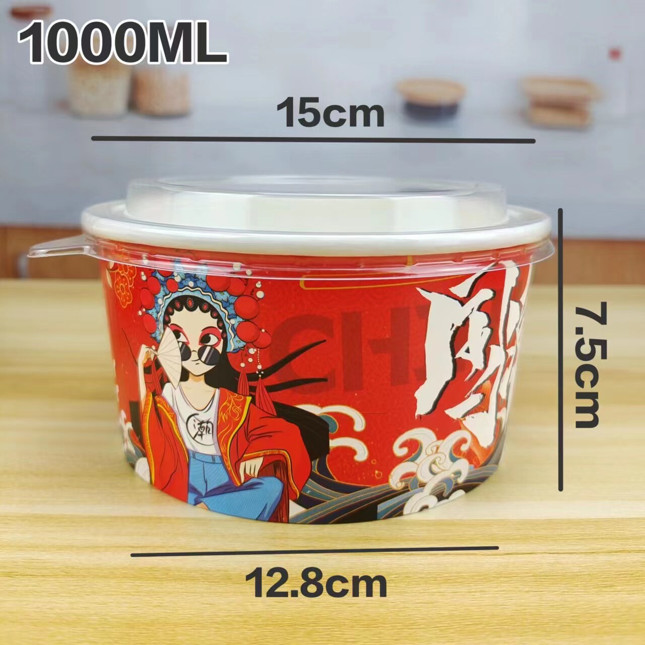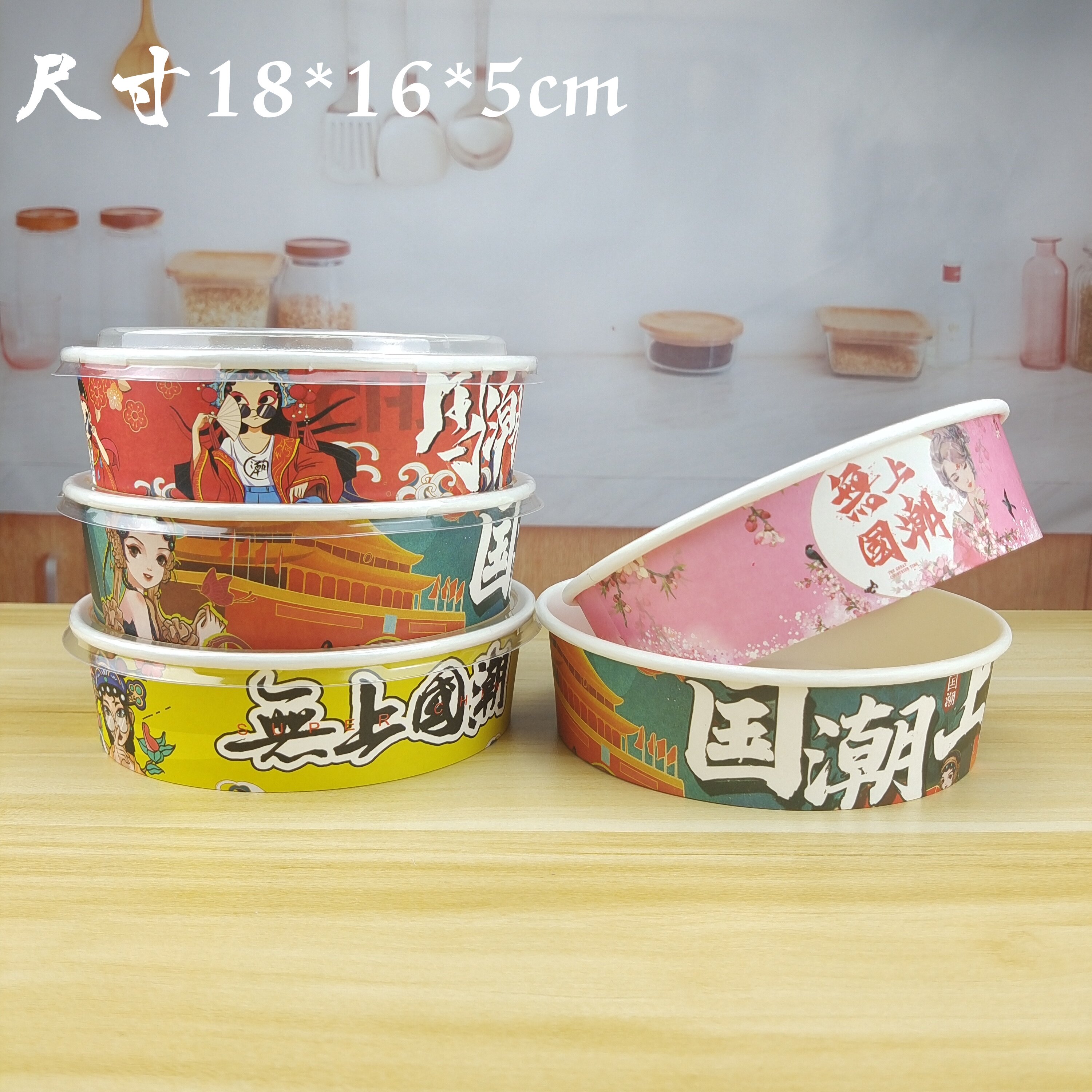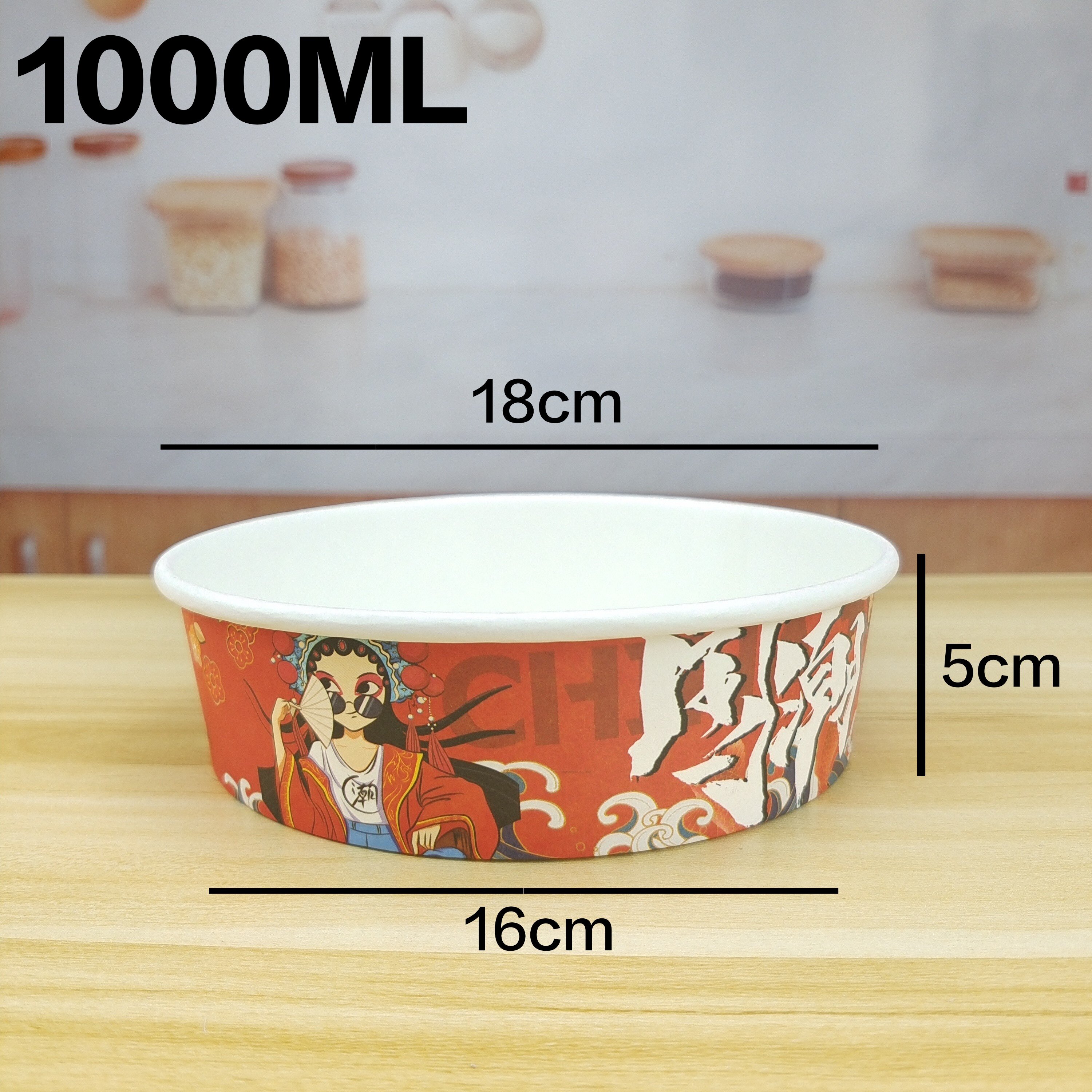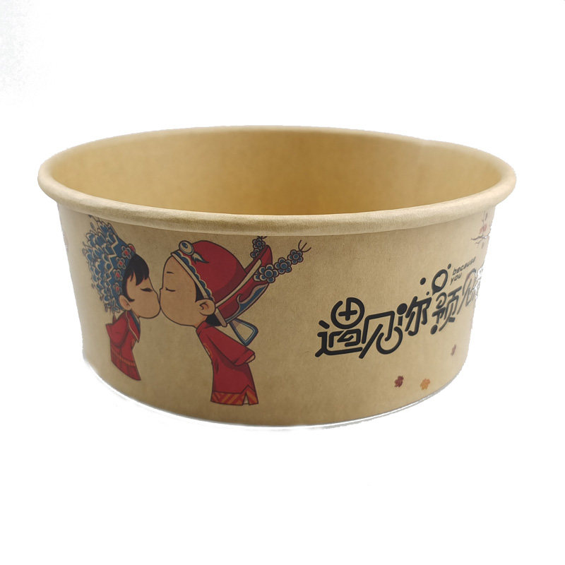 1000一次性牛皮纸打包盒圆形纸碗国潮餐盒沙拉碗外卖便当饭盒加厚