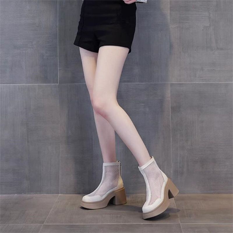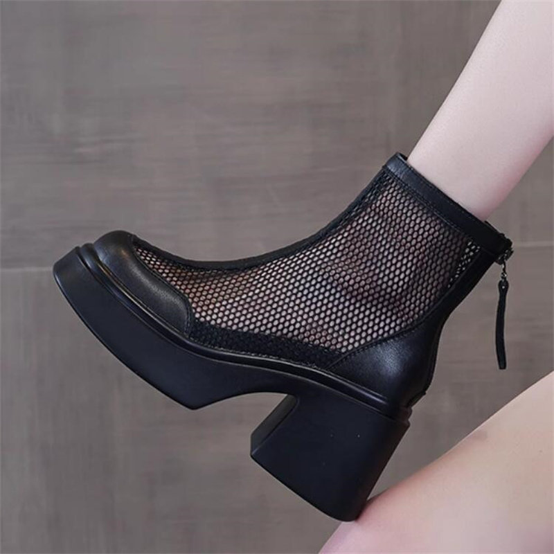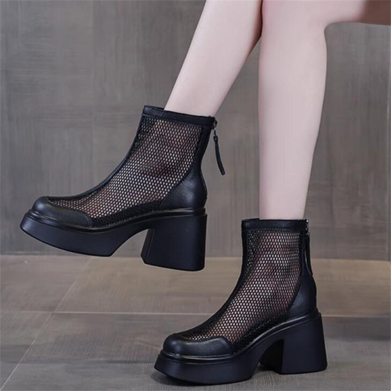 2026夏季新款隐形内增高10厘米真皮透气网纱防水台短筒马丁靴A955