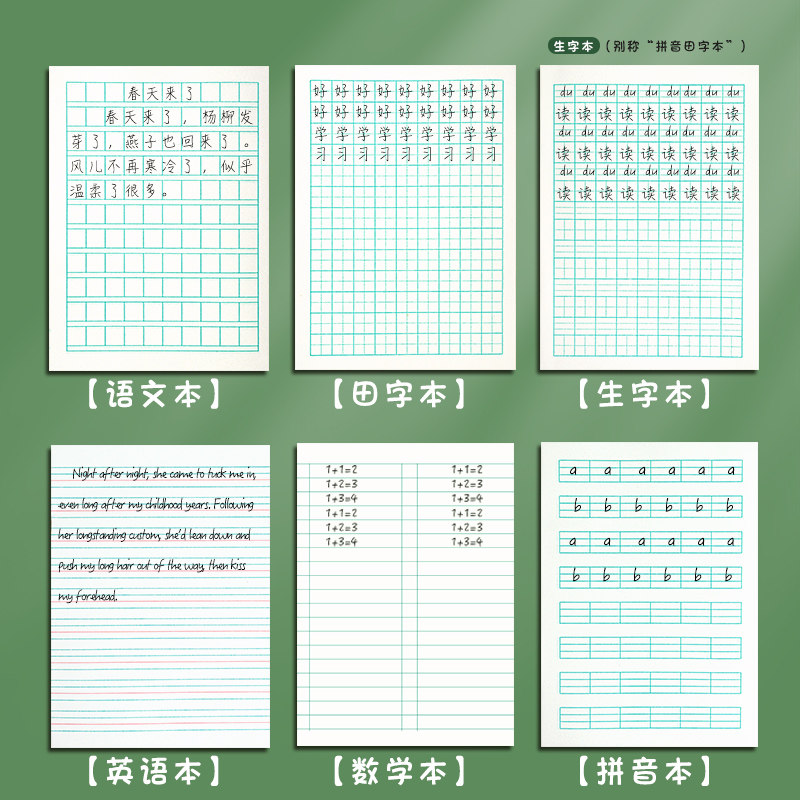 田字格拼音本小学生标准统一练习簿一年级二年级课堂牛皮纸作业本英语本儿童写字生字练习本语文本算数学本