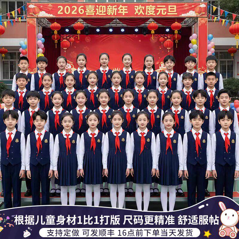 儿童合唱演出服男女童中小学生学院风红领巾朗诵比赛主持人礼服装