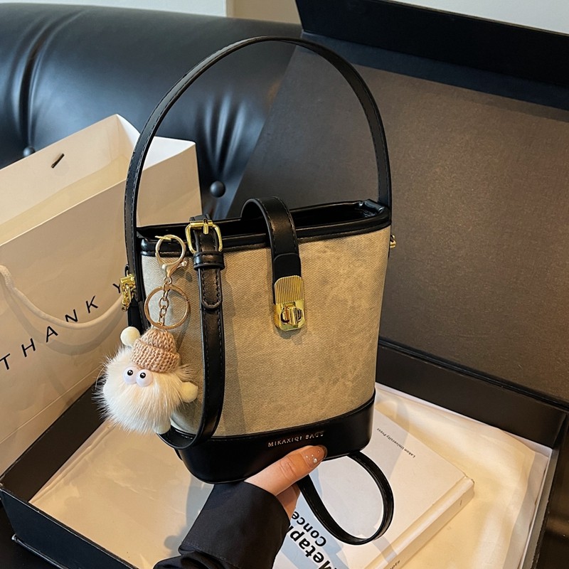今年流行复古小包包女2026新款春夏时尚撞色斜挎包爆款手提水桶包