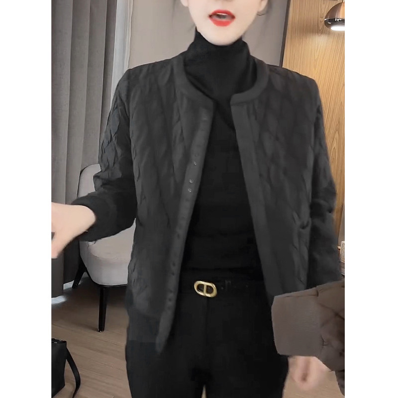 胖mm秋冬时尚复古菱格棉衣外套女宽松显瘦妈妈装百搭洋气保暖上衣