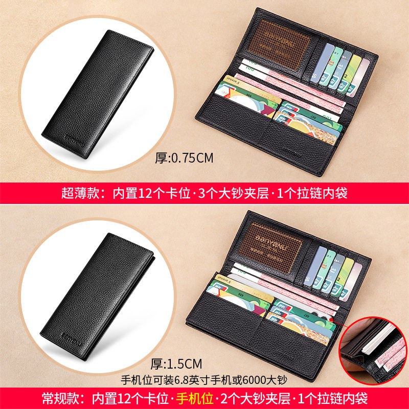 钱包男士长款真皮超薄2025新款软牛皮带拉链钱夹青年商务皮夹潮牌