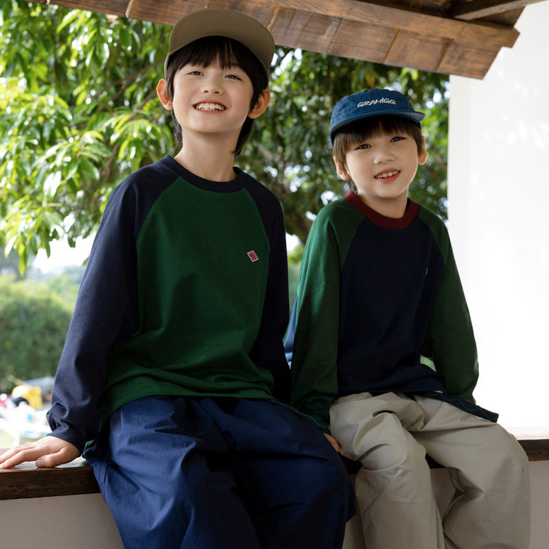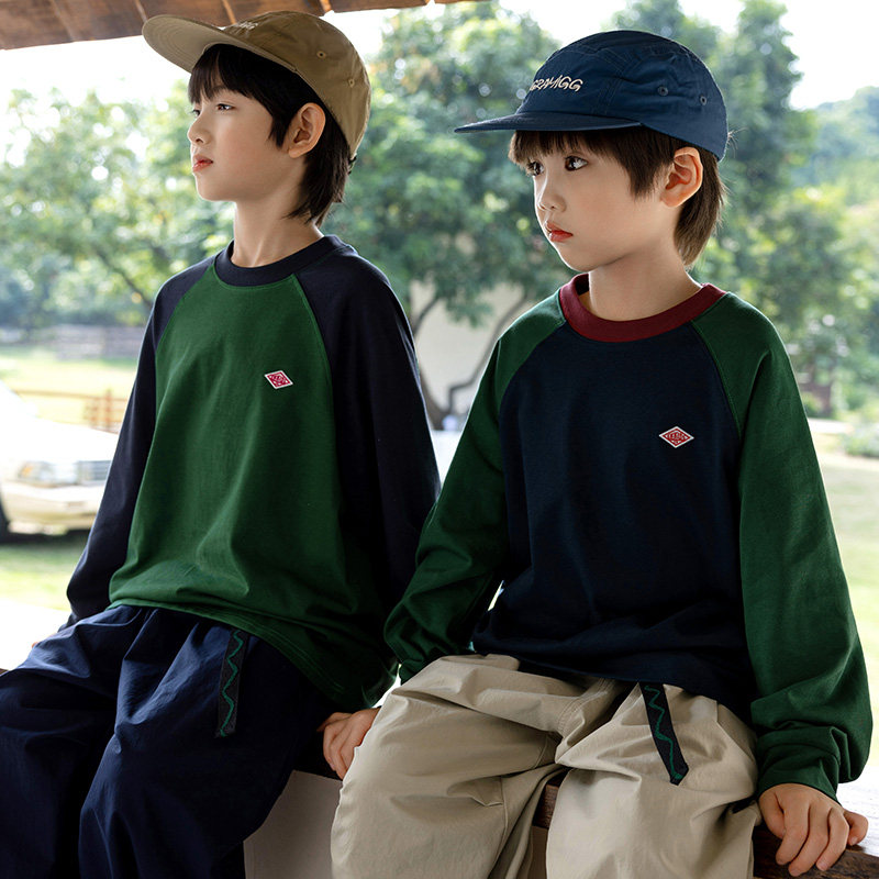 140-180 26春新款大男童T恤纯棉长袖青少年宽松撞色薄款打底衫