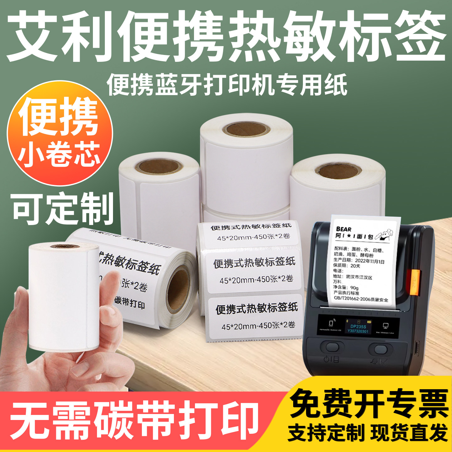 艾利小卷便携式热敏纸打印机55*30x35x40x45x50x65x70x75x80x85x90三防不干胶商品价格标签打码机标价定制做