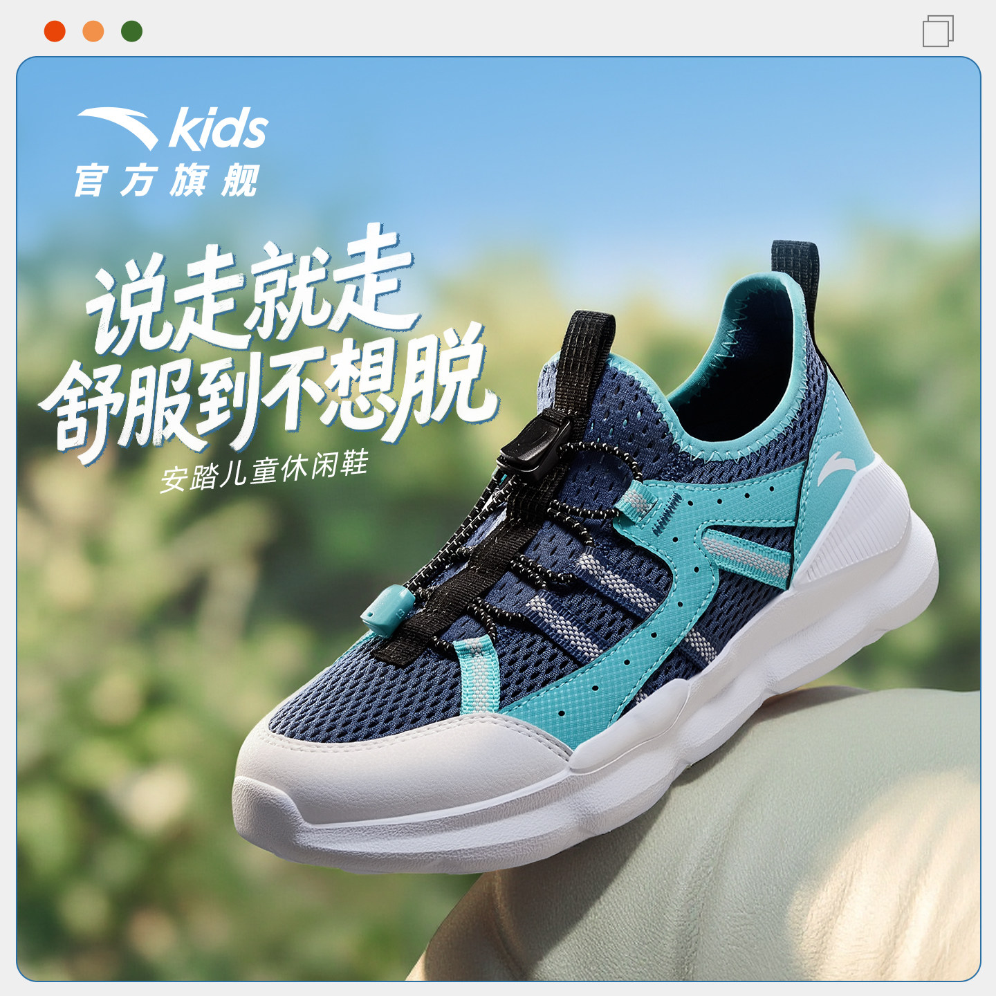 安踏儿童运动鞋2026夏季新款一脚蹬男大童休闲跑鞋女童透气童鞋潮