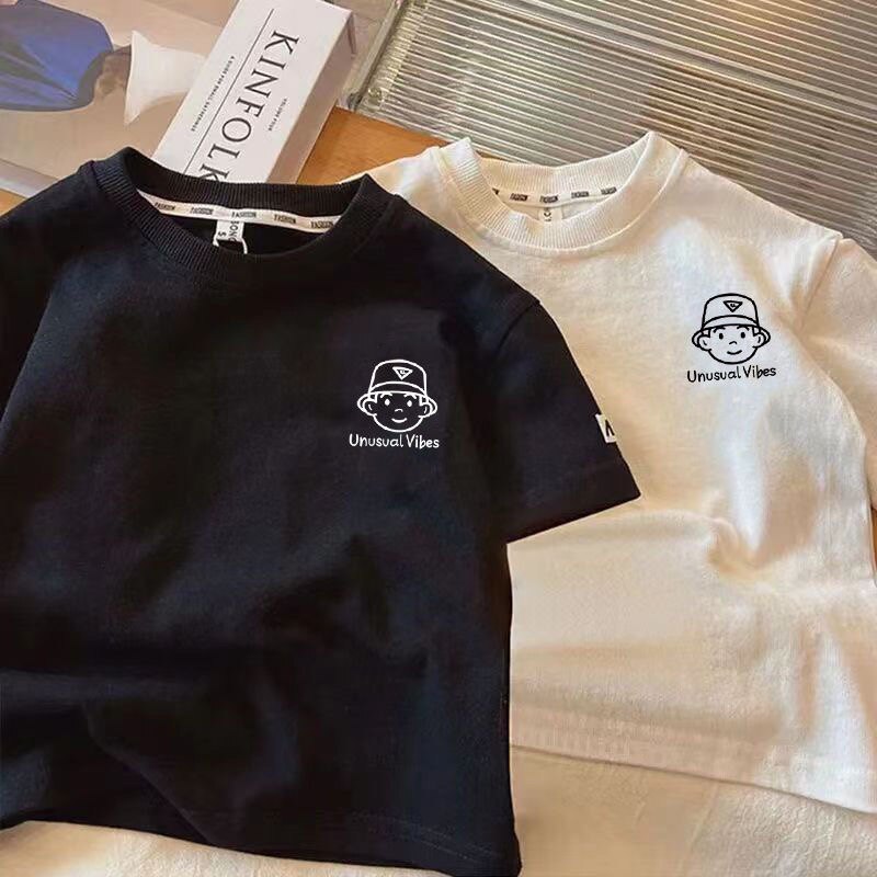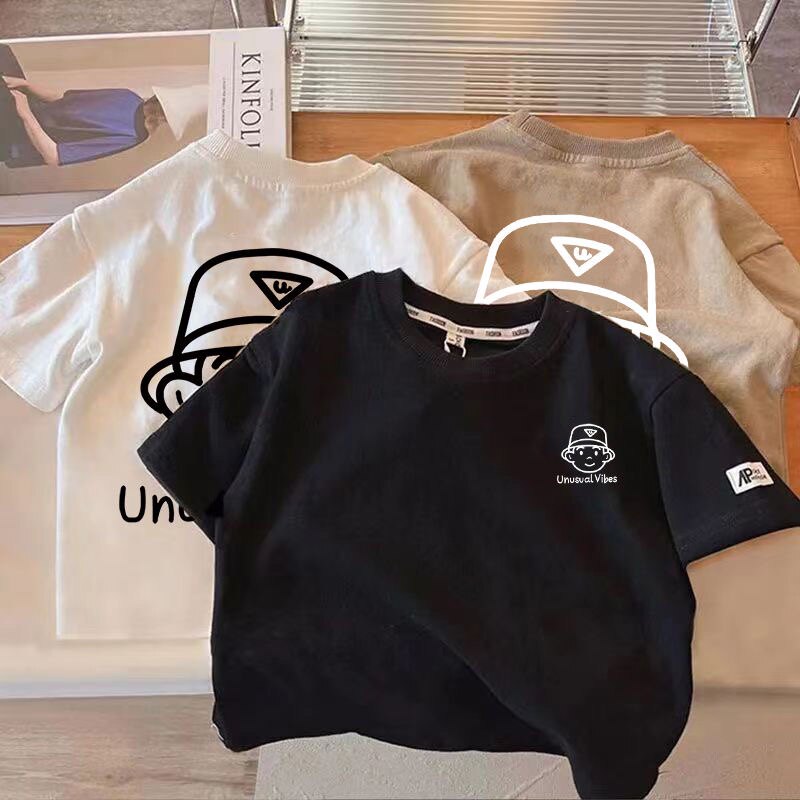 日系纯棉男童短袖上衣韩版夏季潮流男孩半袖t中小儿童帅气宽松t恤
