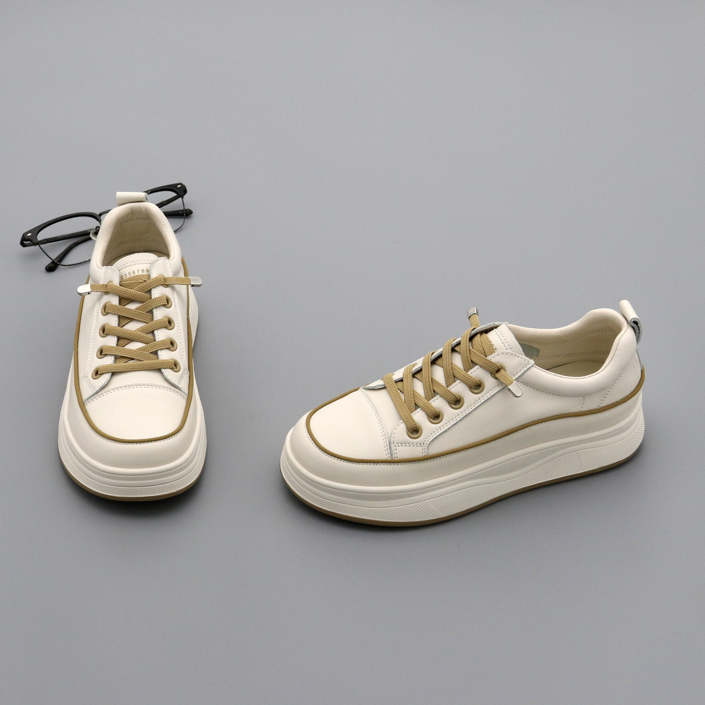 一脚蹬真皮小白鞋女单鞋2026春季新款圆头牛皮平底休闲鞋女板鞋子
