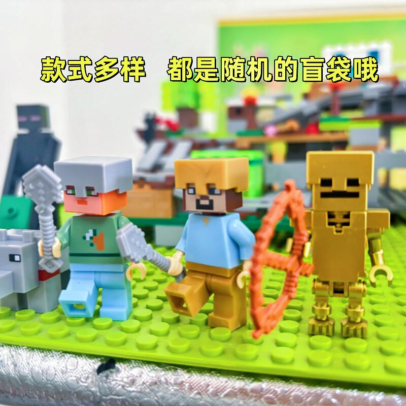 我的世界积木人仔史蒂夫村民动物抽盲袋儿童DIY周边拼装玩具礼物