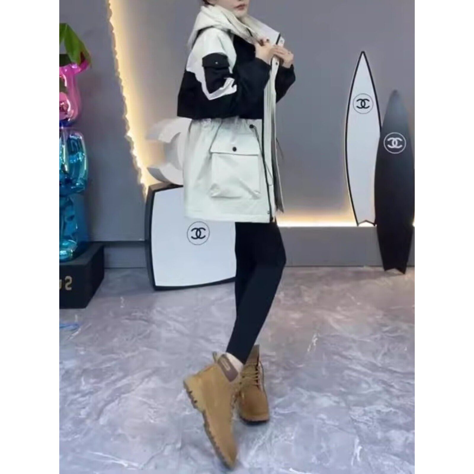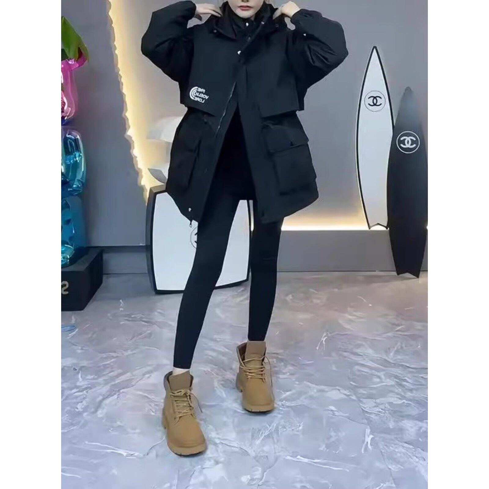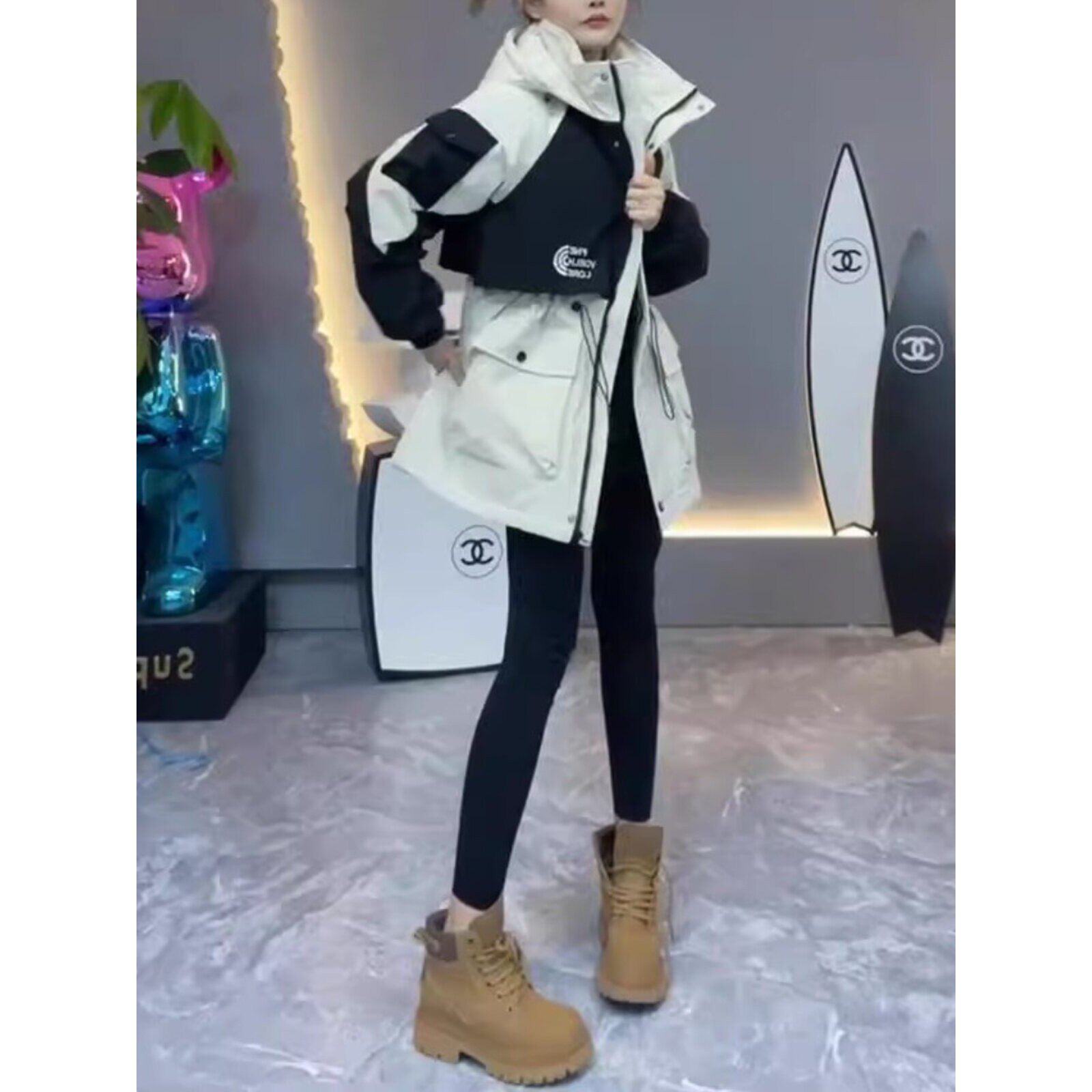 工装冲锋衣女春秋高端欧货中长款收腰女款保暖外套二棉棉服派克服