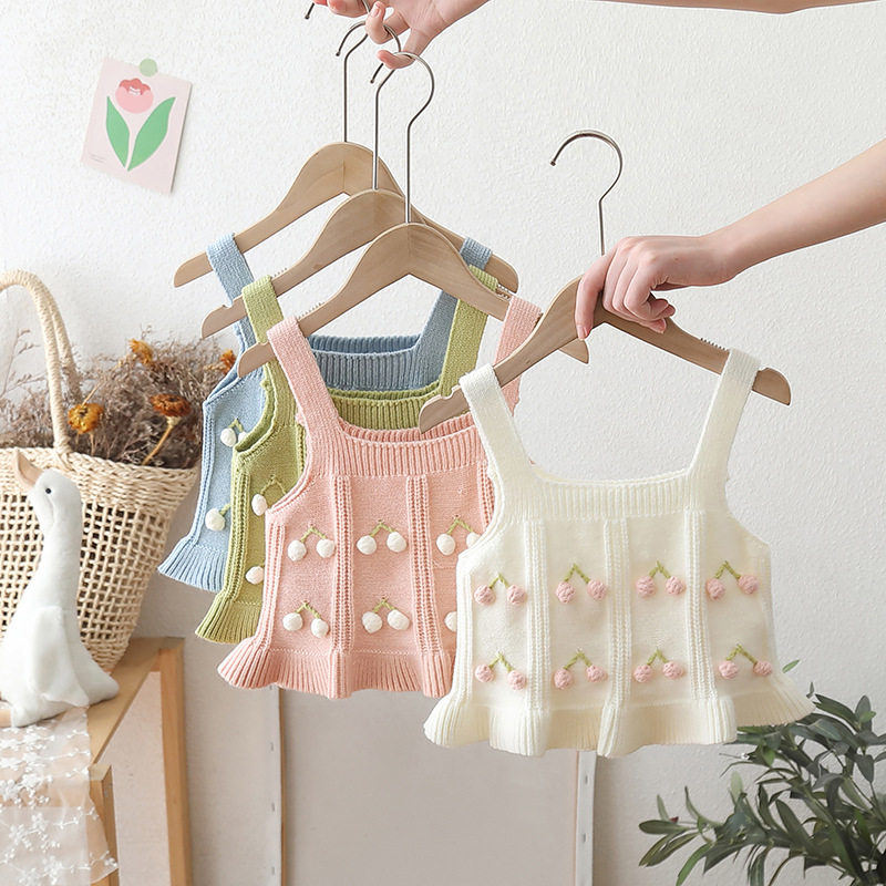 女童针织马甲2025新款春秋宝宝小童背心吊带裙摆韩版洋气樱桃毛衣