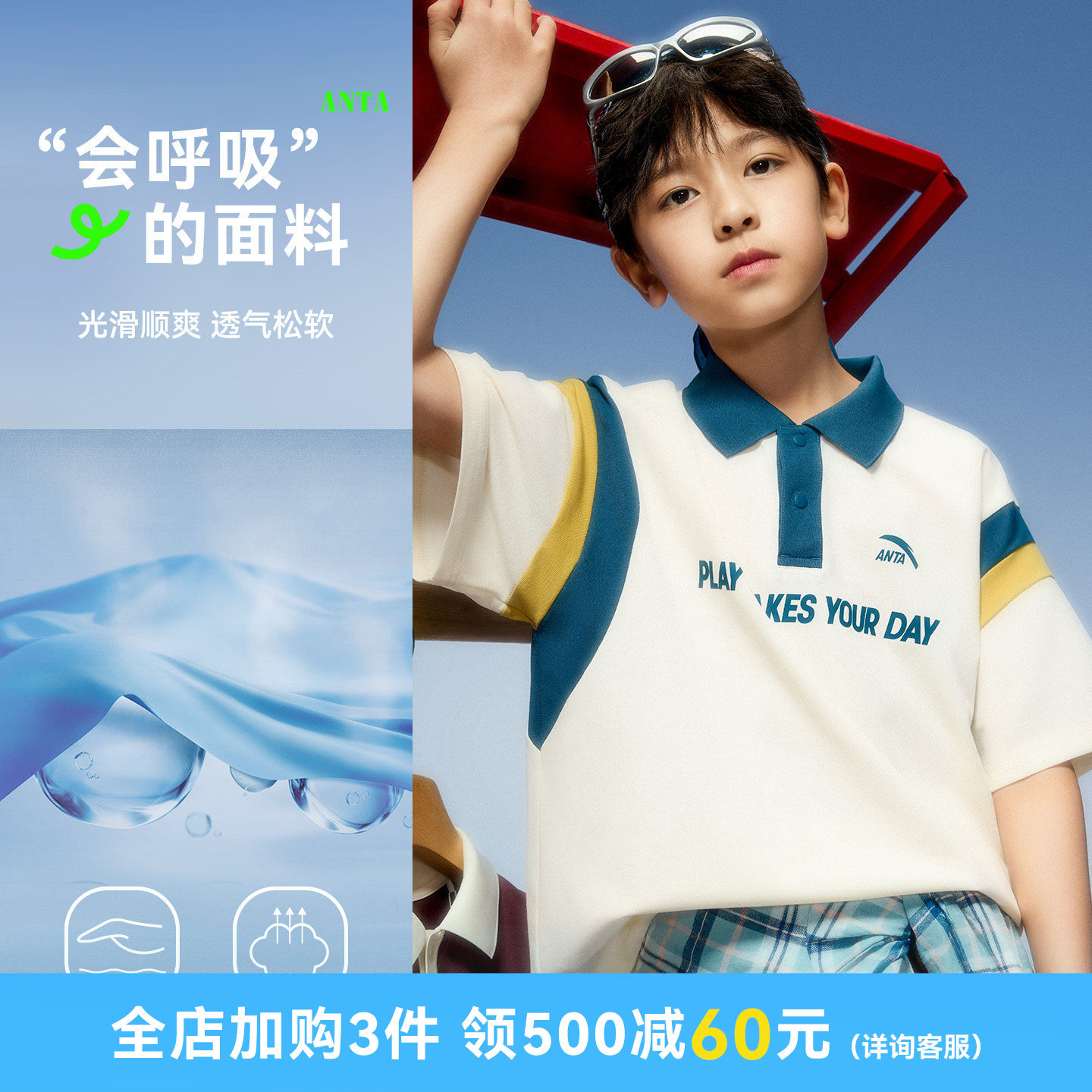 安踏儿童足球文化短袖POLO衫2026年夏季新款透气速干青少年短T恤