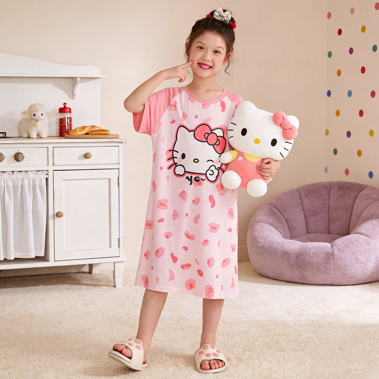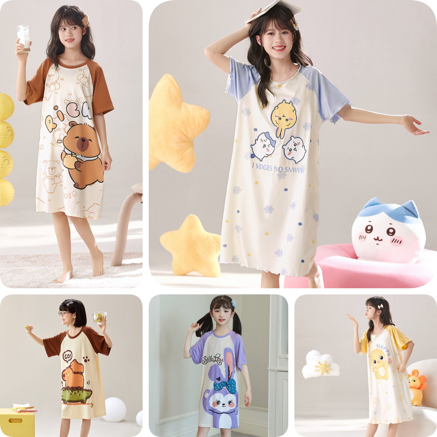 2026新款女童莫代尔睡裙夏季薄款短袖女孩可爱公主风儿童睡衣裙子