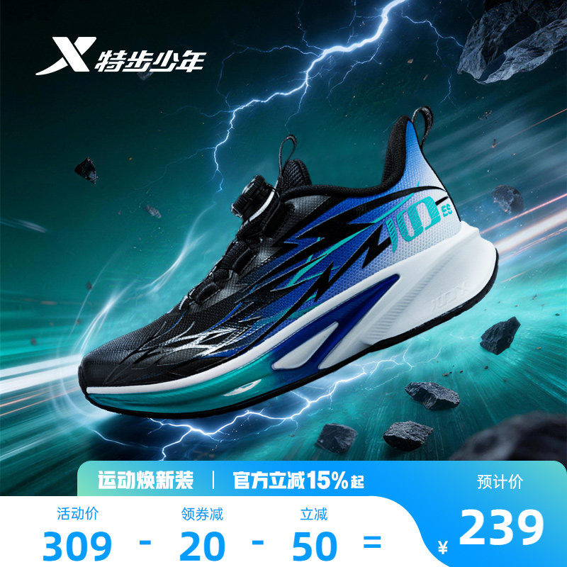 特步100ES特步童鞋儿童运动鞋男中大童防滑耐磨竞速体测跑步鞋