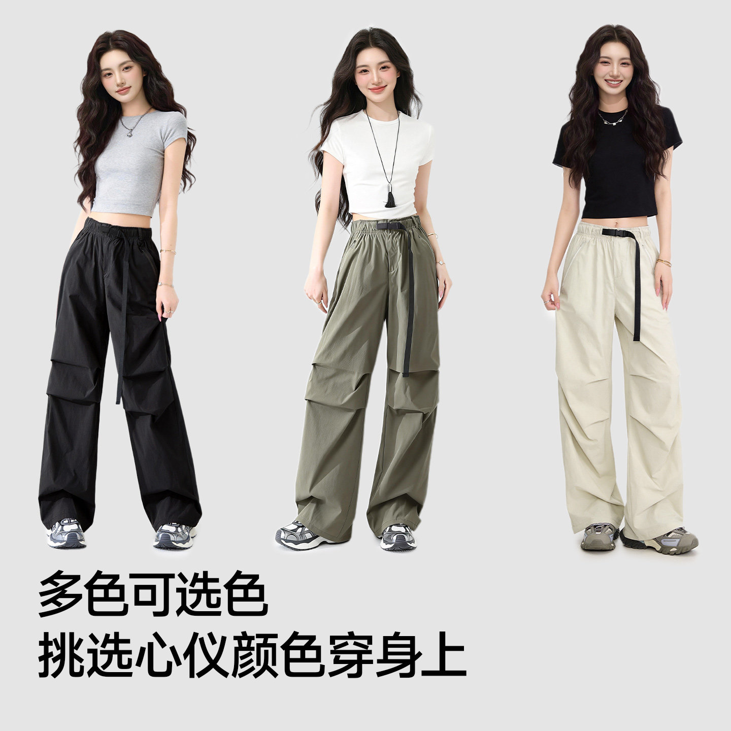猫人黑色工装裤女款2026新款高腰春季速干防晒伞兵裤小个子裤子Z