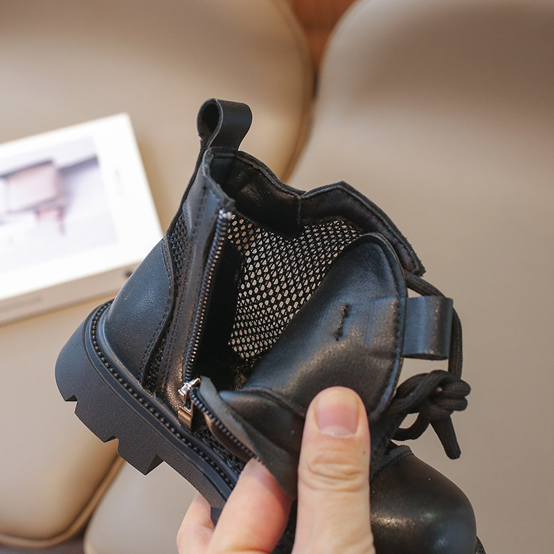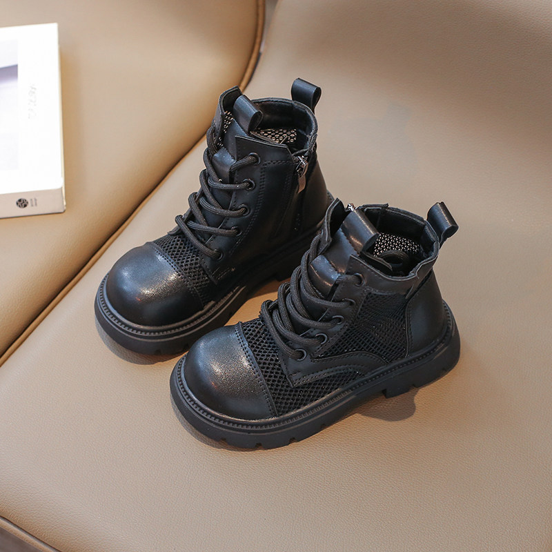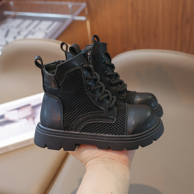 夏季薄款镂空儿童马丁靴男款军训表演女童靴子黑色透气网潮酷短靴