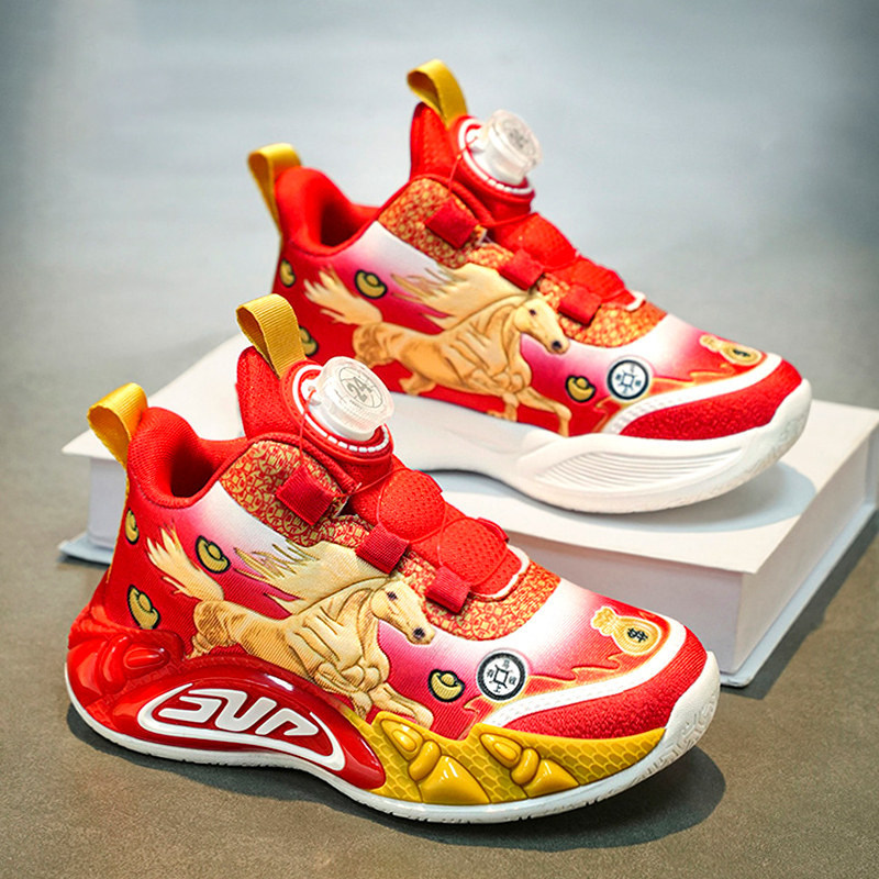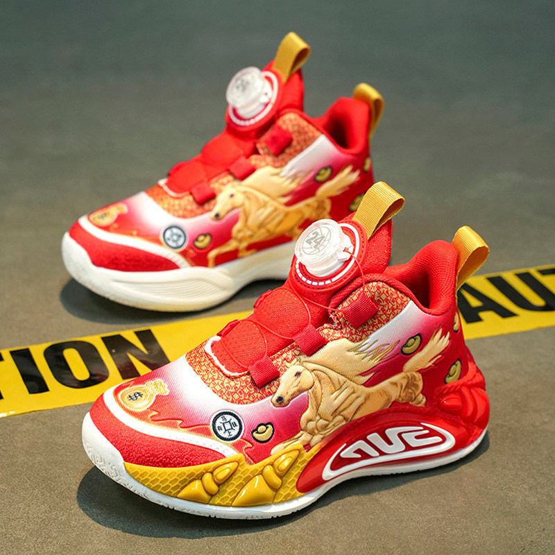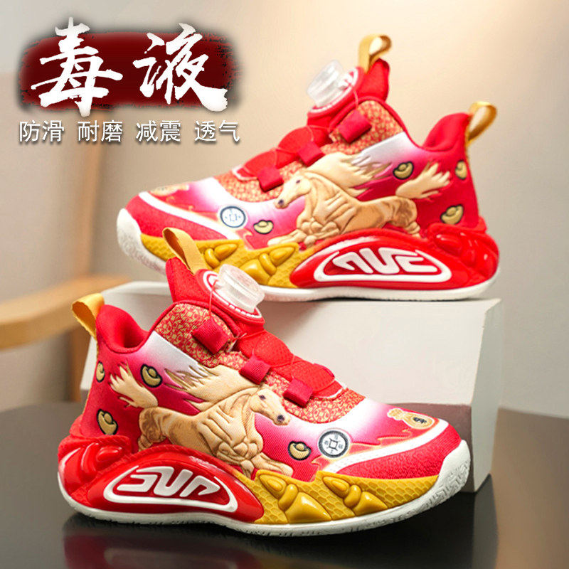 官网C&K男童鞋子红色新年鞋2026新款春季儿童防滑运动篮球鞋跑步