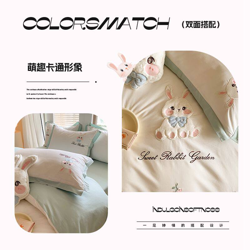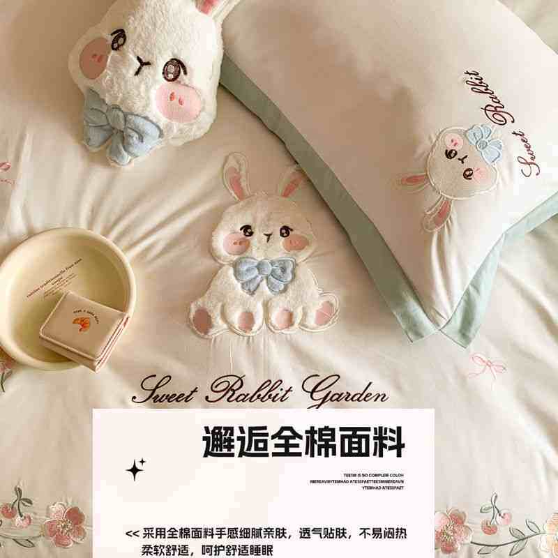 可爱少女心全棉四件套纯棉长绒棉卡通儿童高级感床上用品床单被套