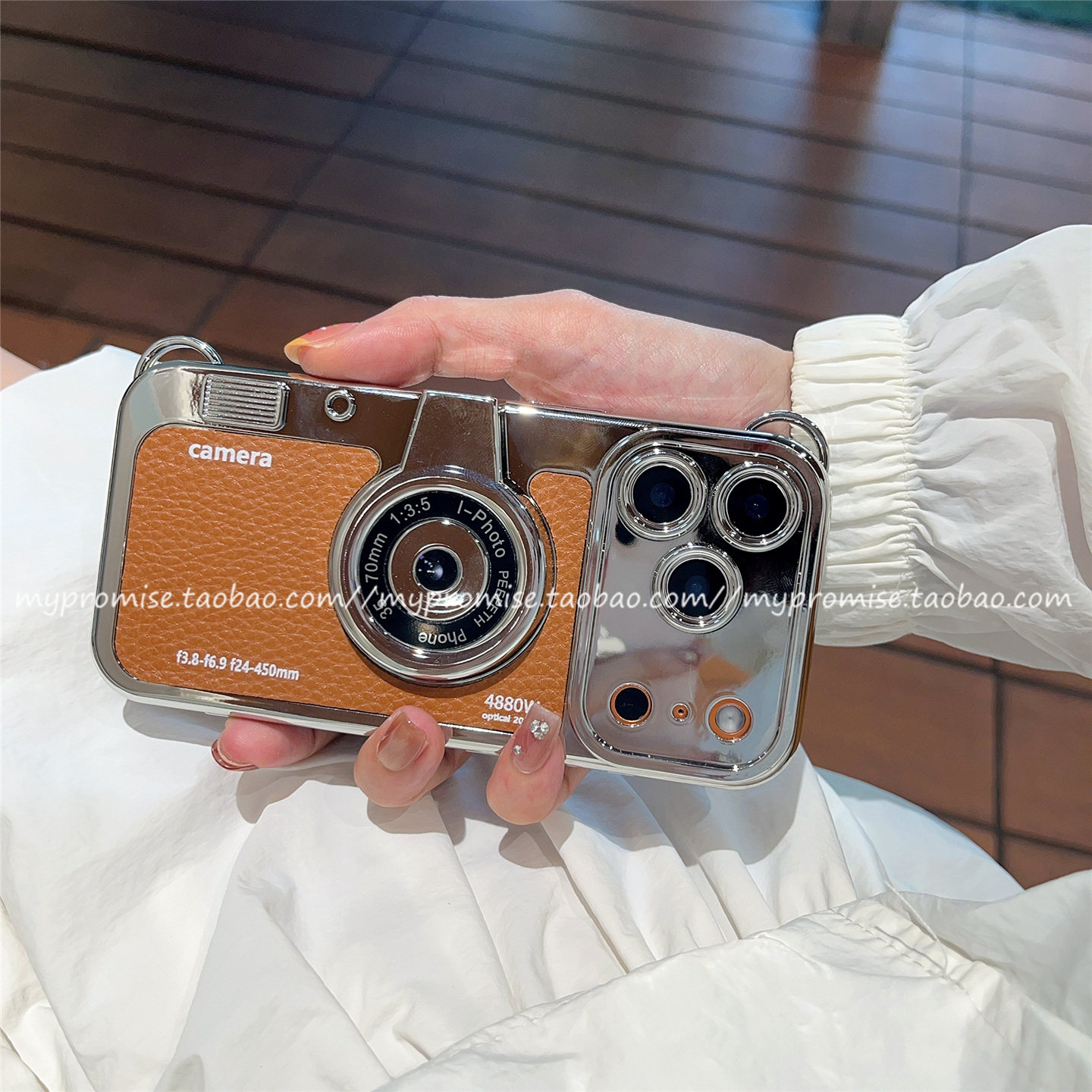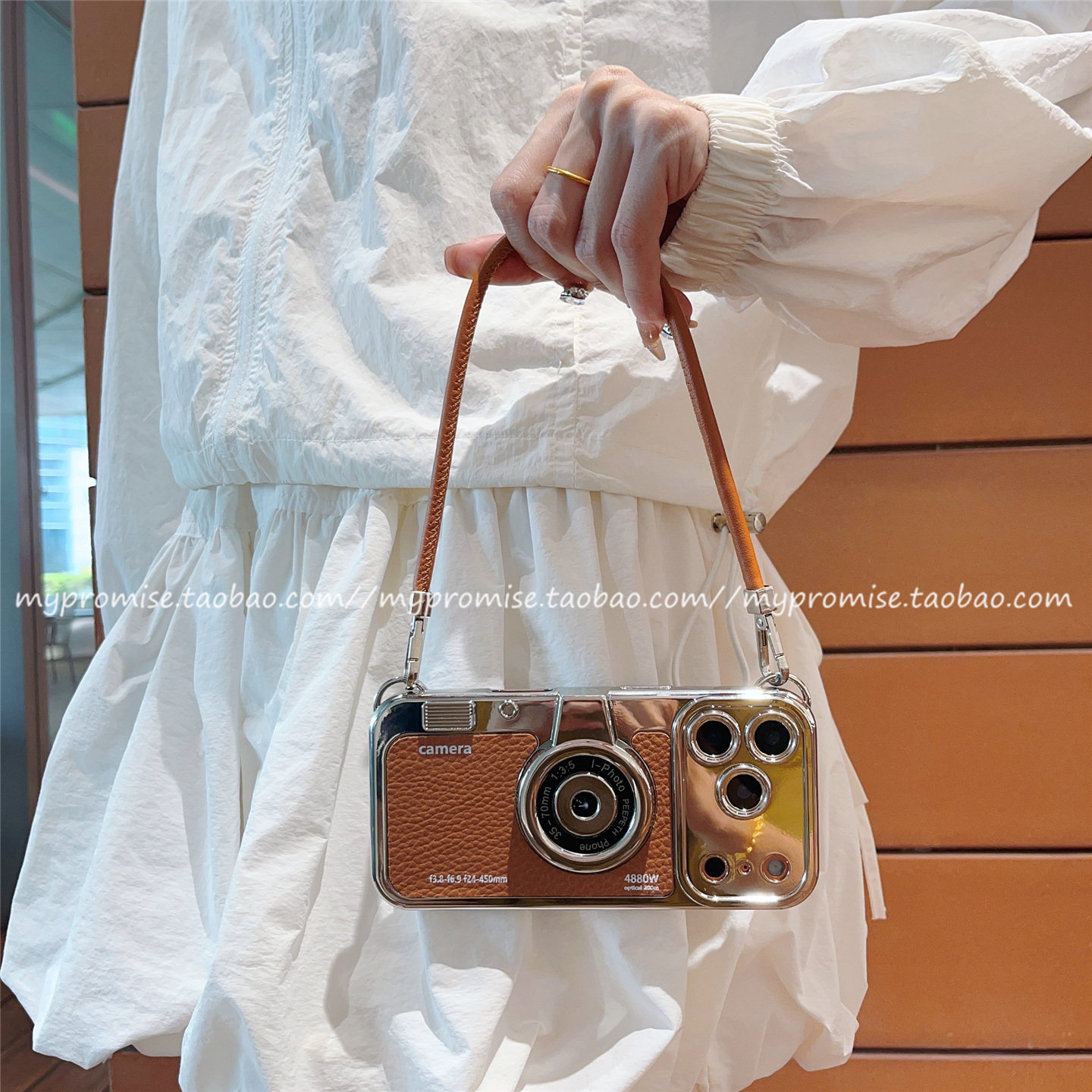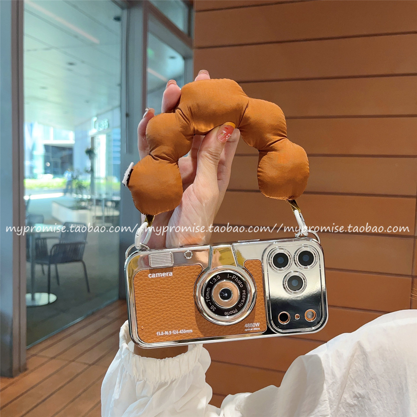 适用苹果17promax手机壳新款iphone16pro复古相机15pro充棉手腕带14Plus带挂绳17pro斜挎可背13创意手提12女