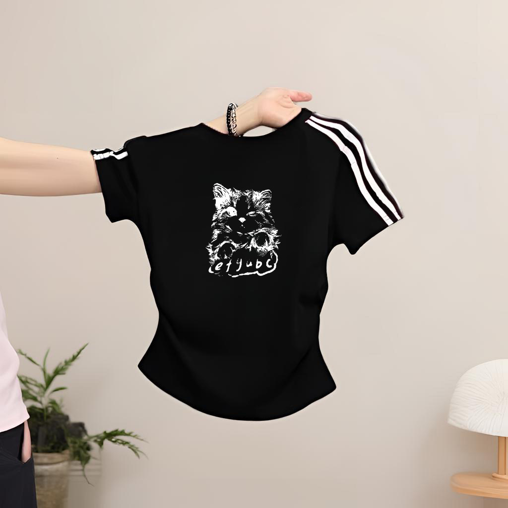 女童夏季短袖2026新款美式收腰短款纯棉T恤中大儿童时髦洋气上衣