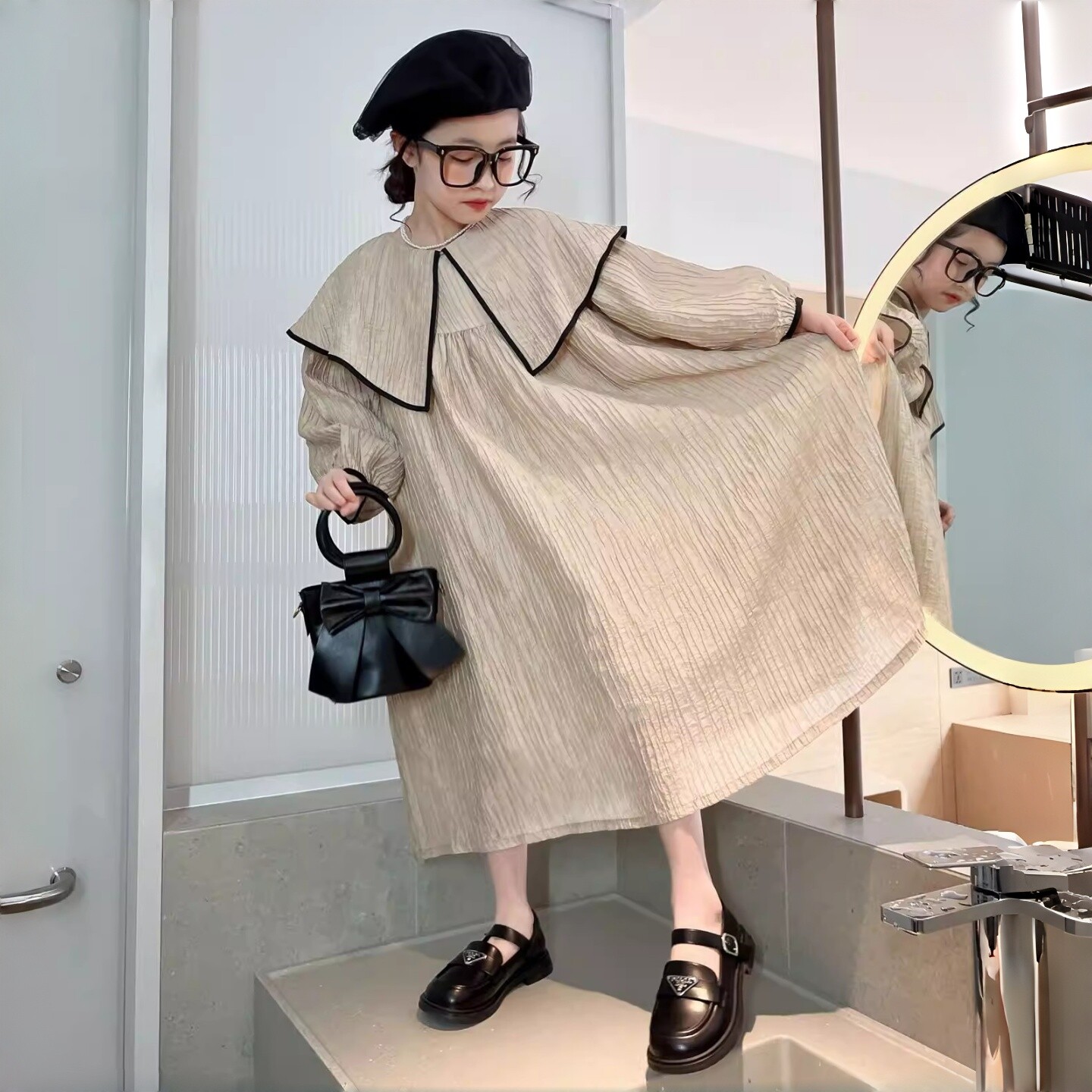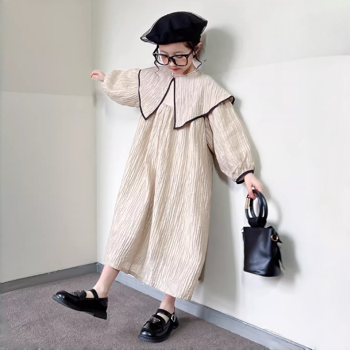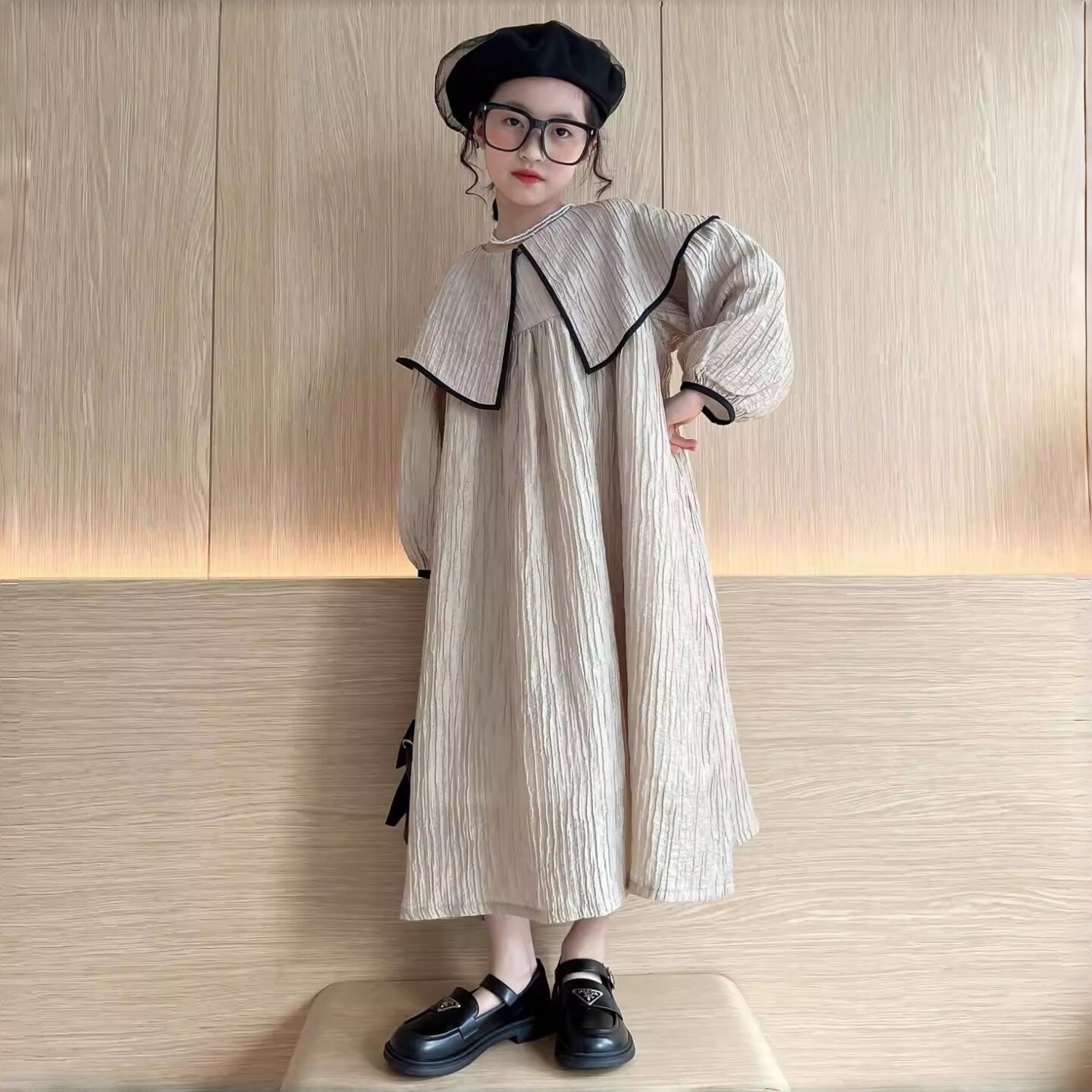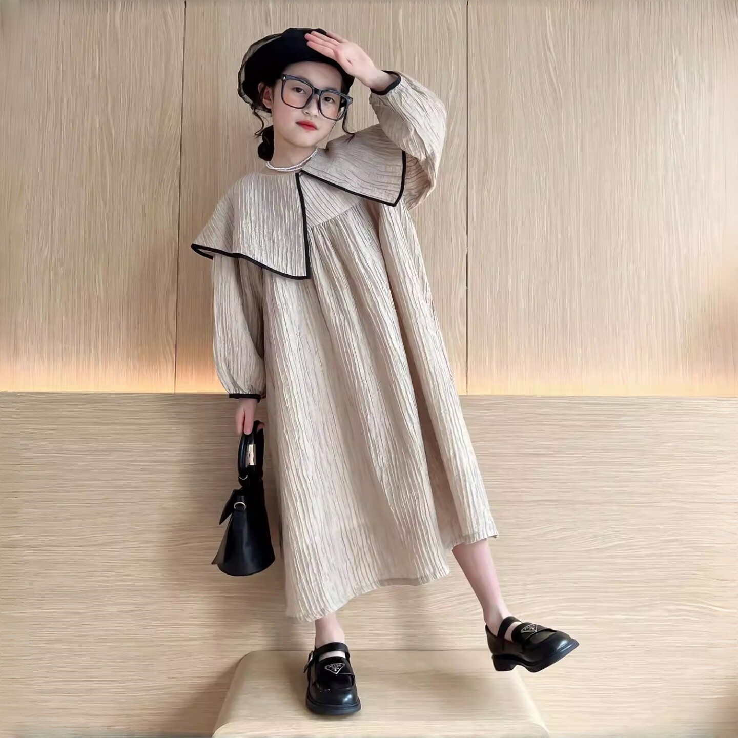 女童早春连衣裙胖女孩春装裙子大披肩领长袖小学生森系女大童长裙