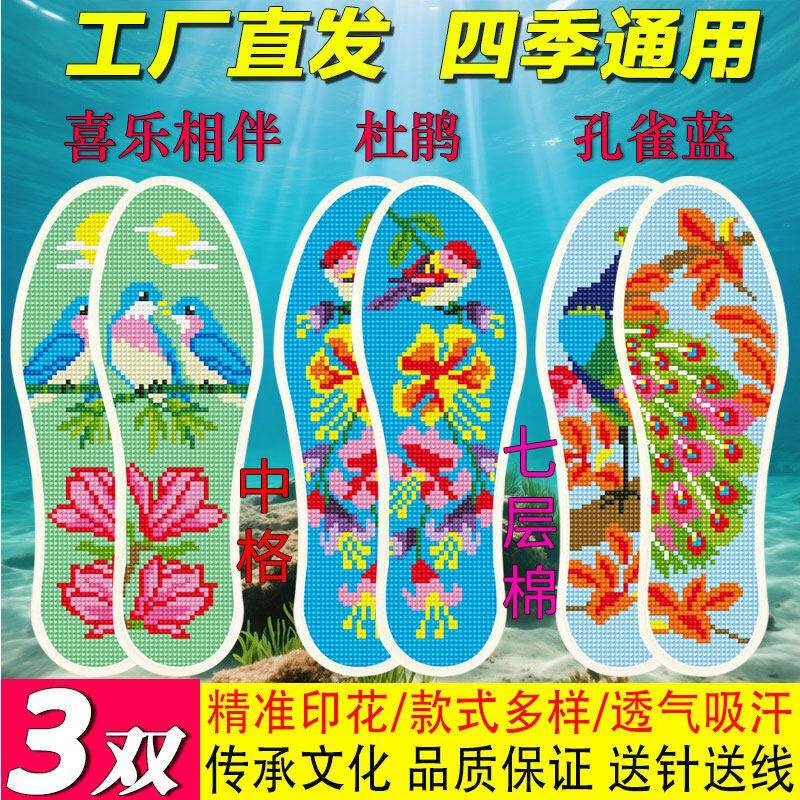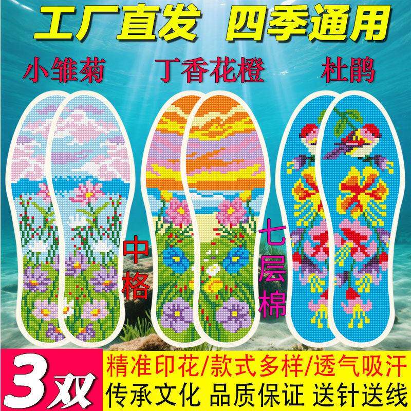 新款纯手工结婚男女半成品十字绣鞋垫棉自己绣刺绣卡通格子花