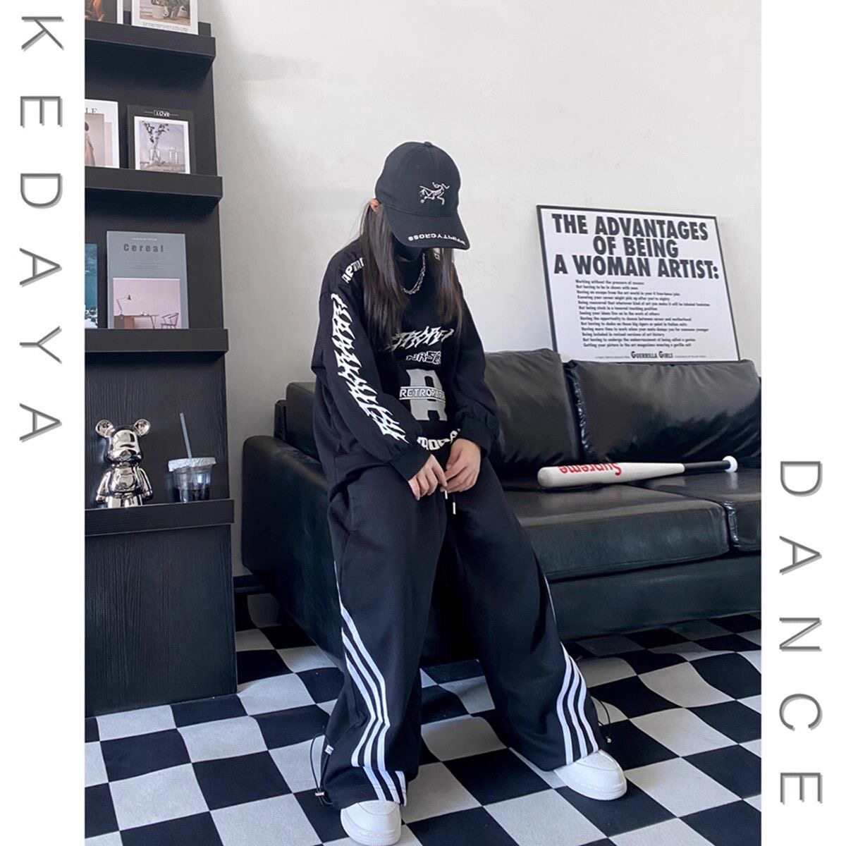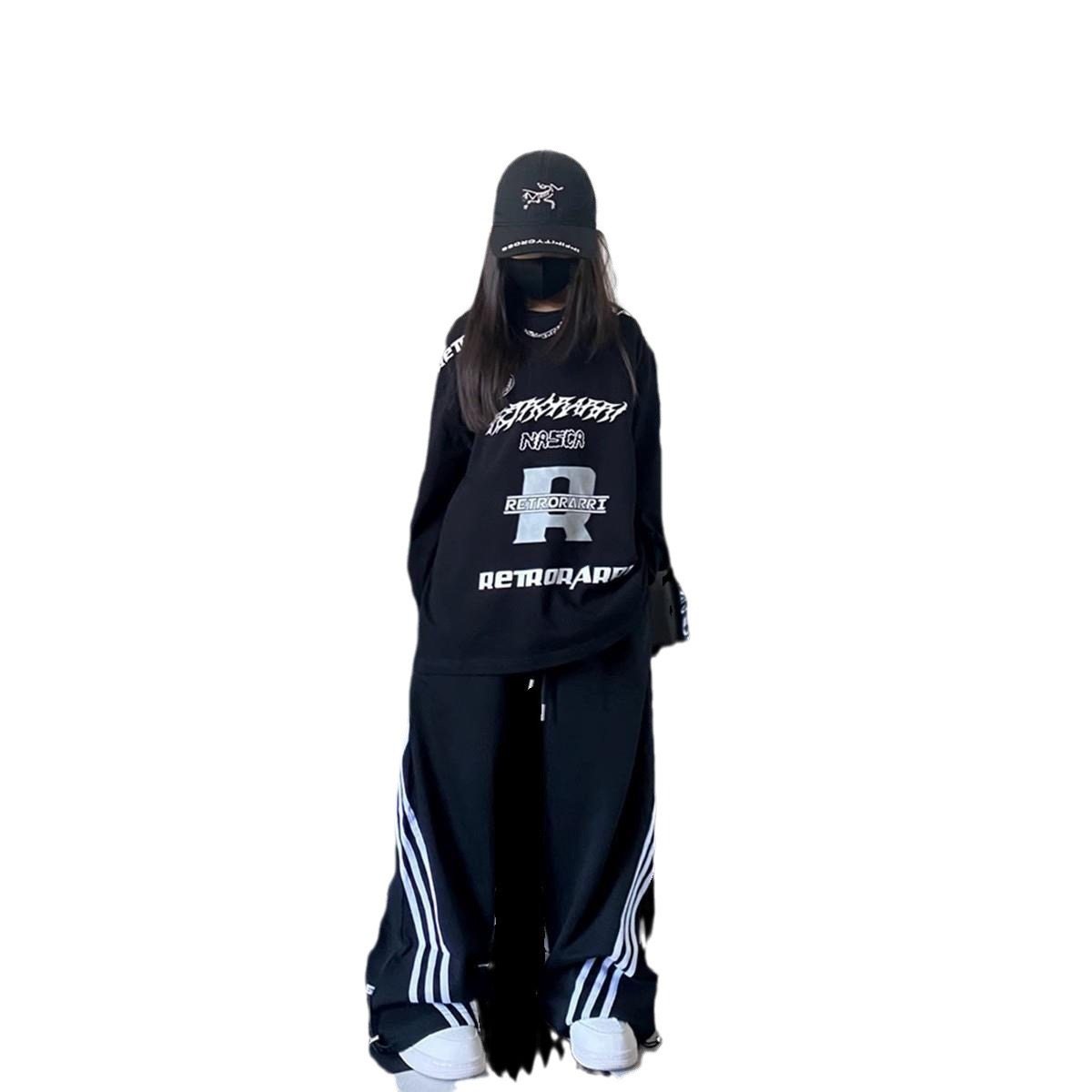 2025春秋童装潮酷男女儿童宽松嘻哈长袖T恤裤子街舞两件套演出服