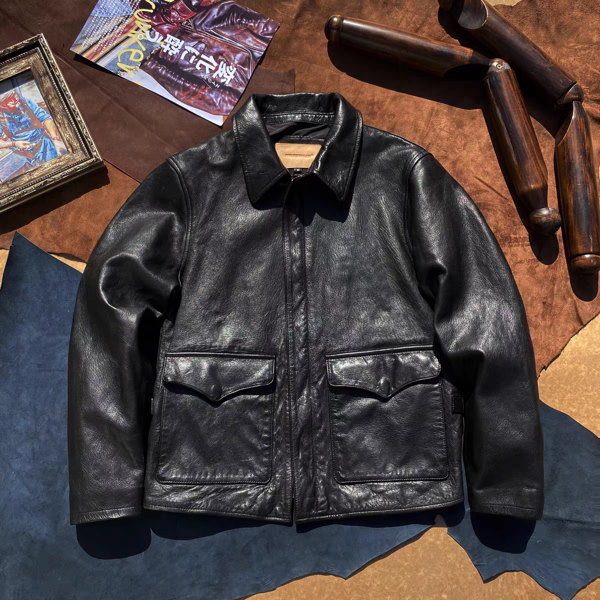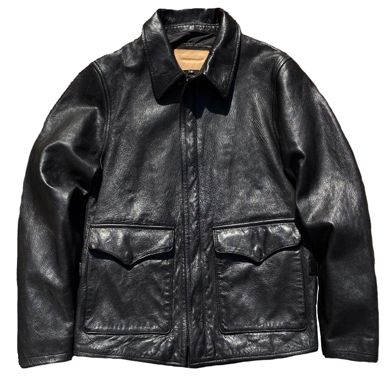 美式复古老炮植鞣山羊皮皮衣男士大码真皮外套夺宝奇兵翻领皮夹克