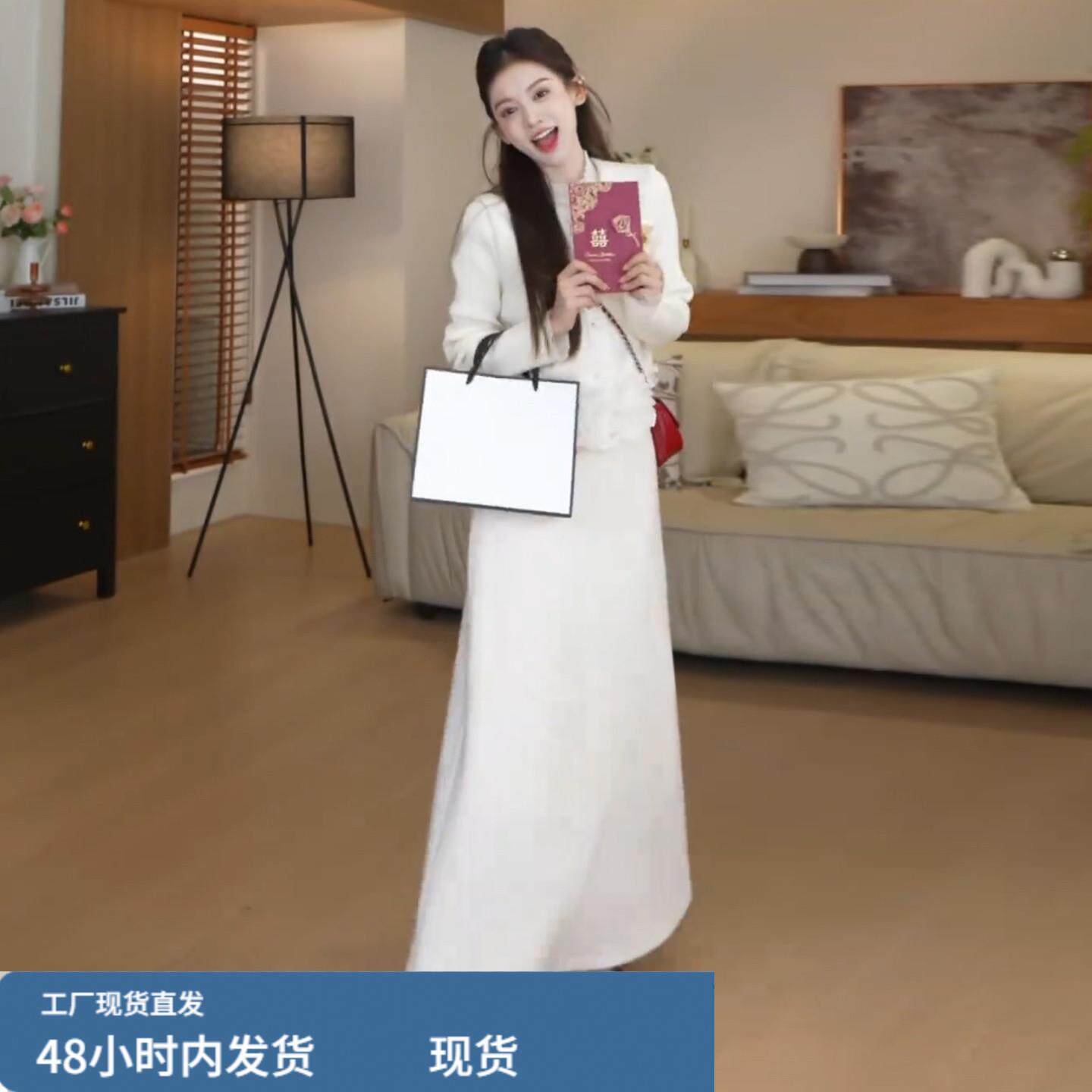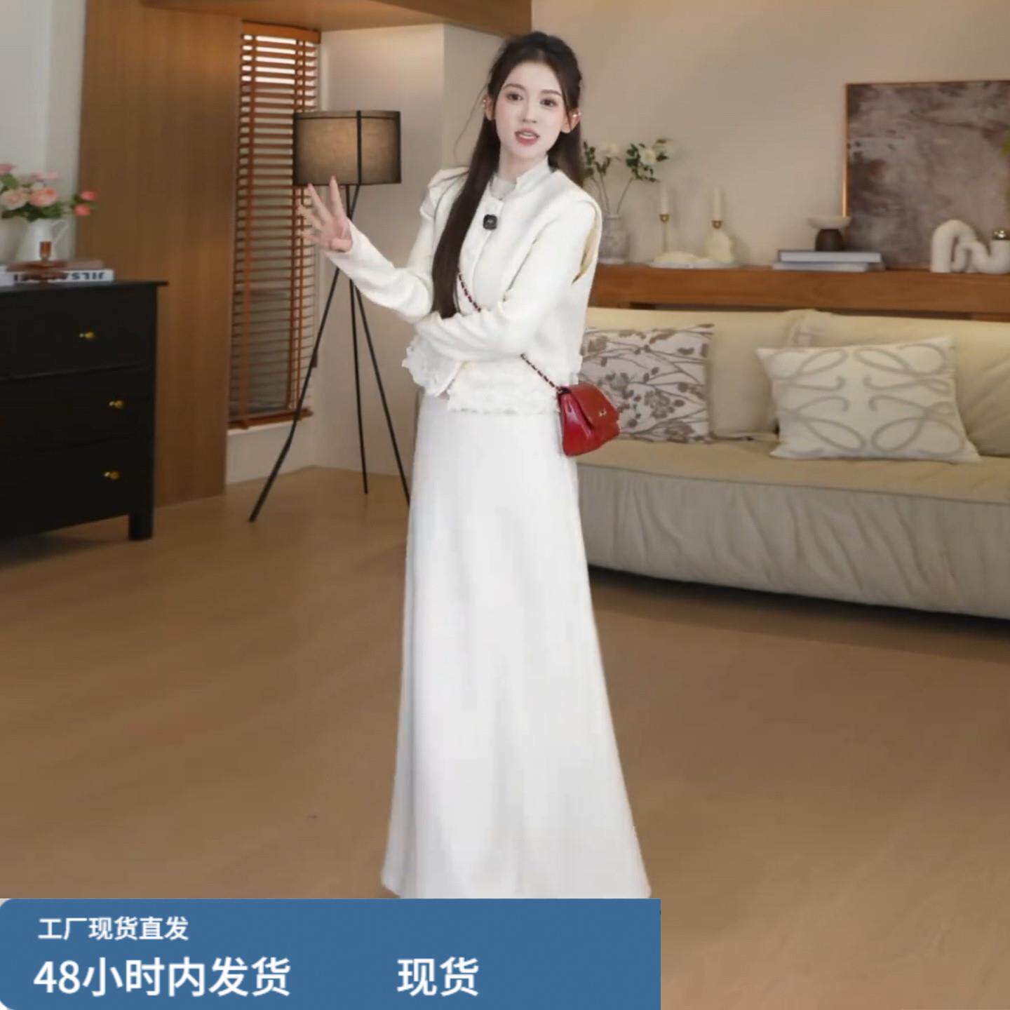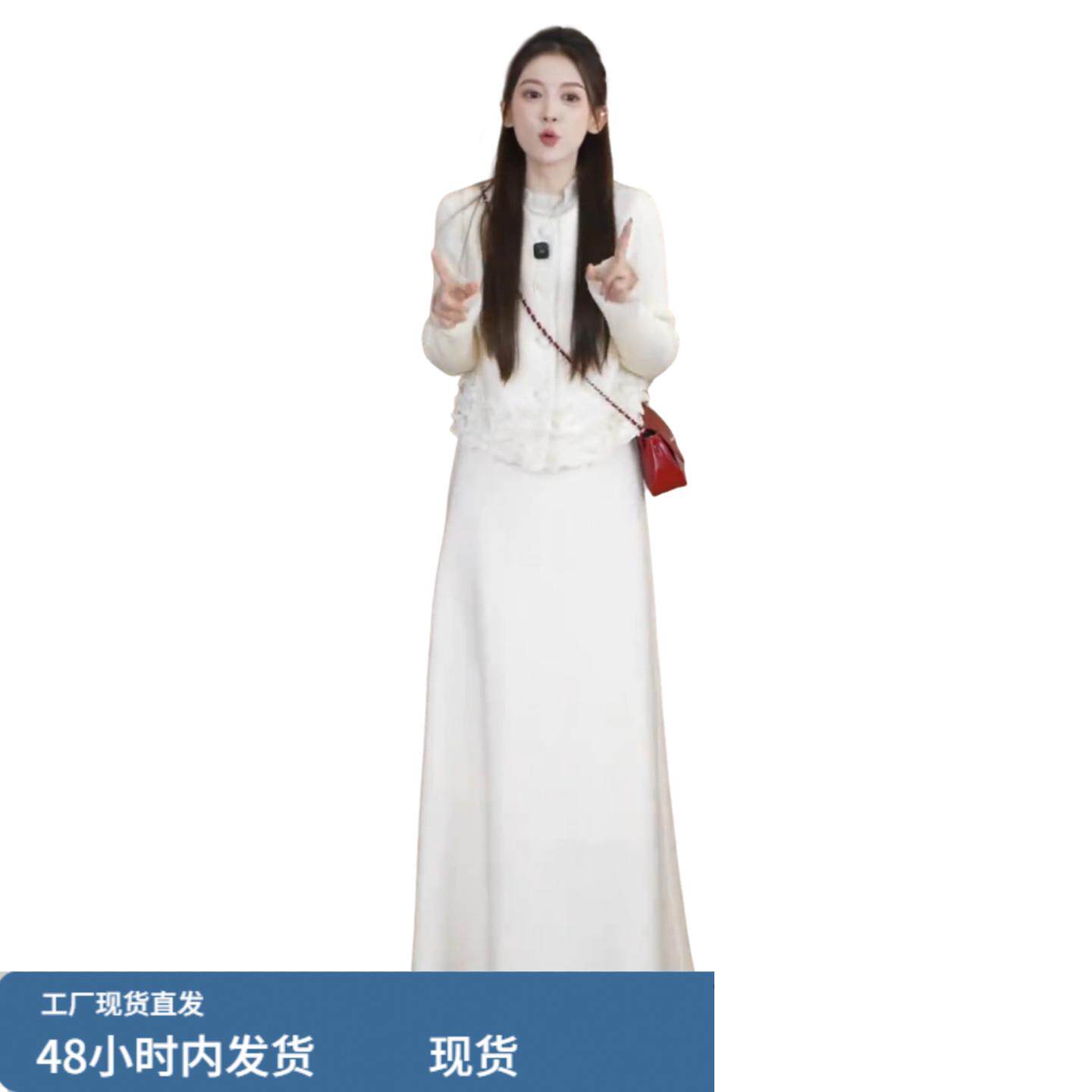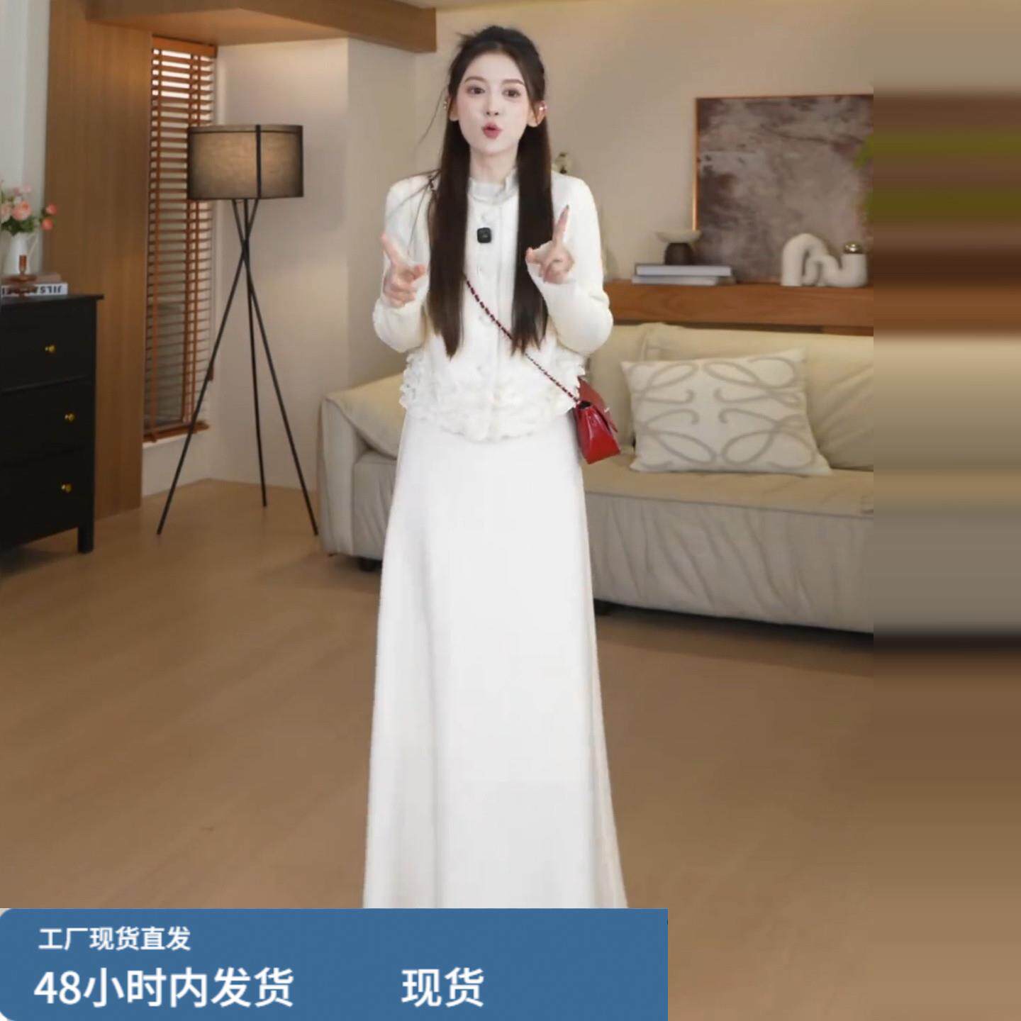 千金温柔风白色针织内搭连衣裙子女2026新款秋冬季小个子长裙套装