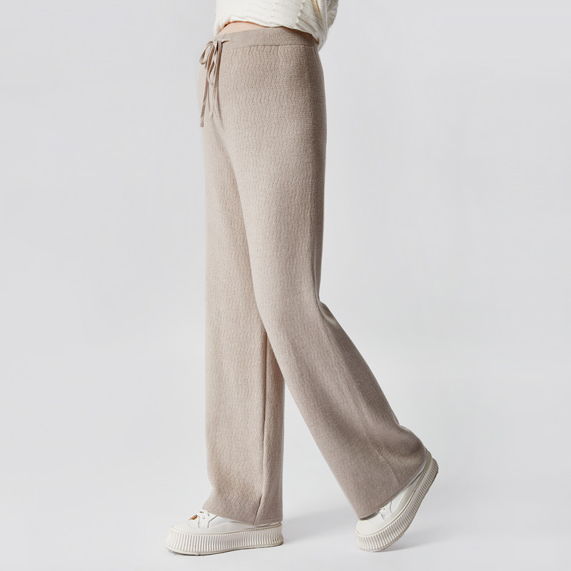 孕妇针织阔腿裤女秋冬加绒加厚裤子冬天外穿垂感抽绳直筒拖地长裤