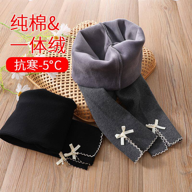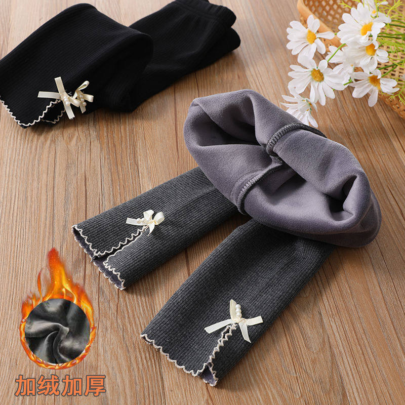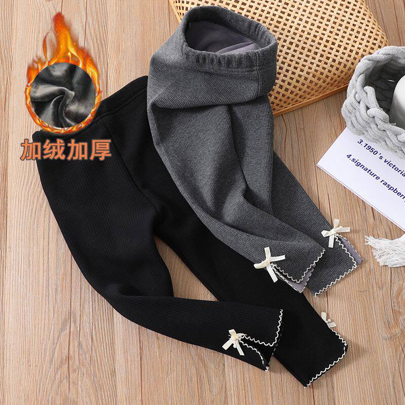 新款女童冬天加绒打底裤宝宝软弹绵柔甜美加厚蝴蝶结外穿弹力裤子
