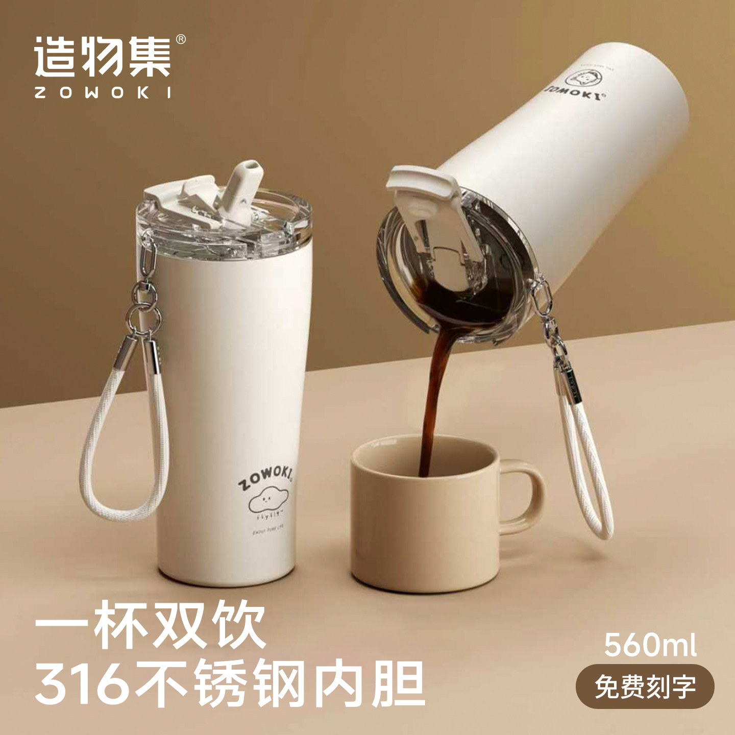 造物集保温杯外带便携随行大容量女吸管杯咖啡杯喝水杯子礼物定制