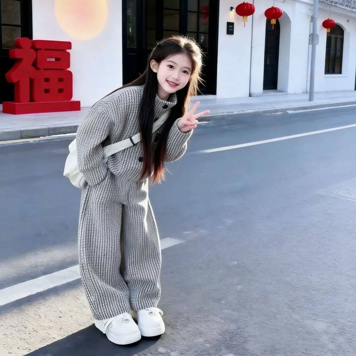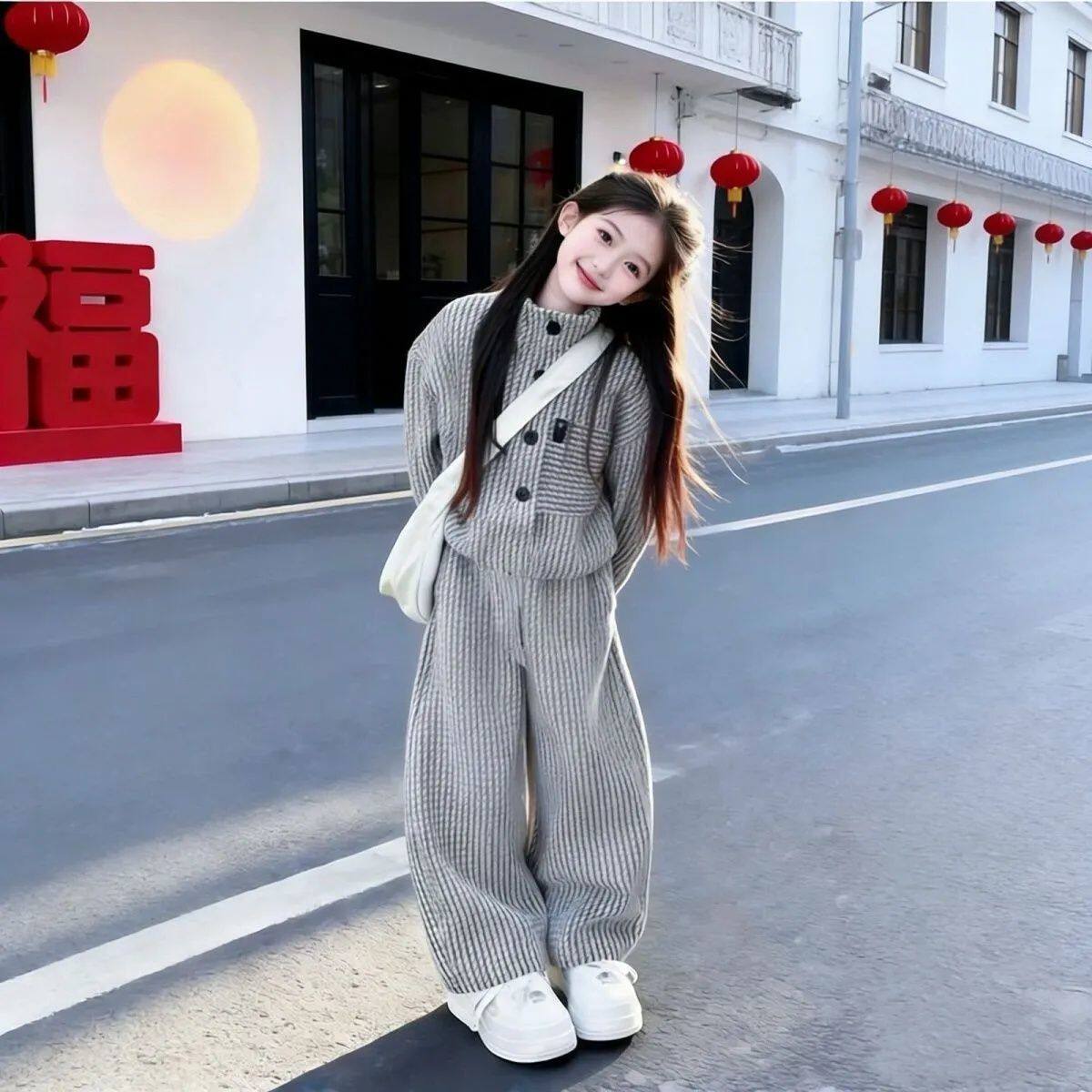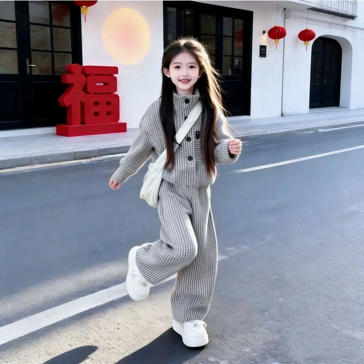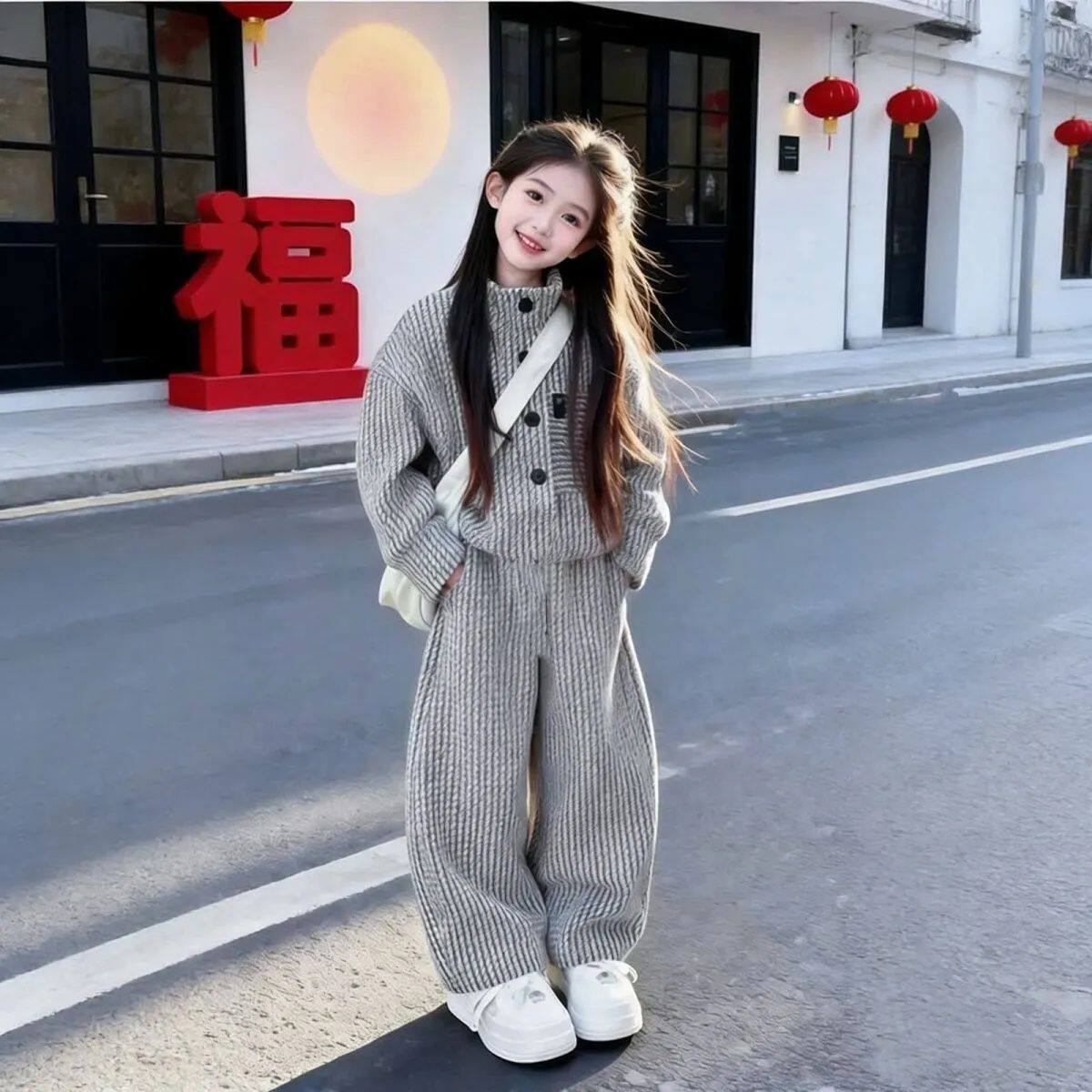 女童时尚上衣长裤春秋装套装2026新款儿童春款竖纹韩版女孩两件套