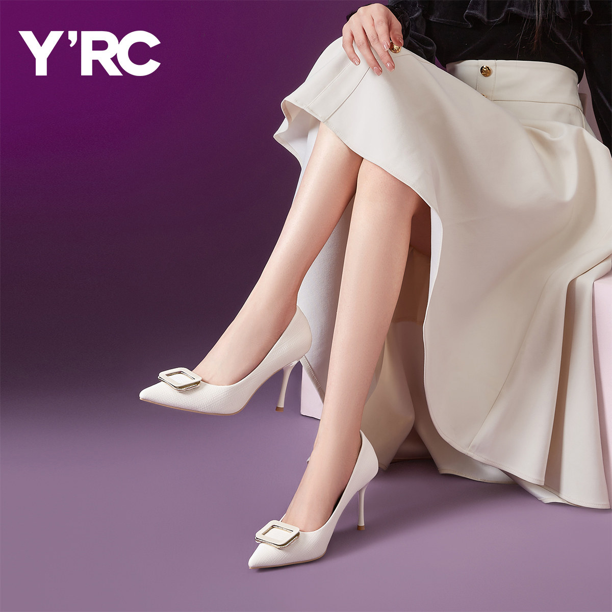 YRC女鞋高跟鞋2025春夏新款尖头细跟时装鞋休闲百搭浅口时尚单鞋