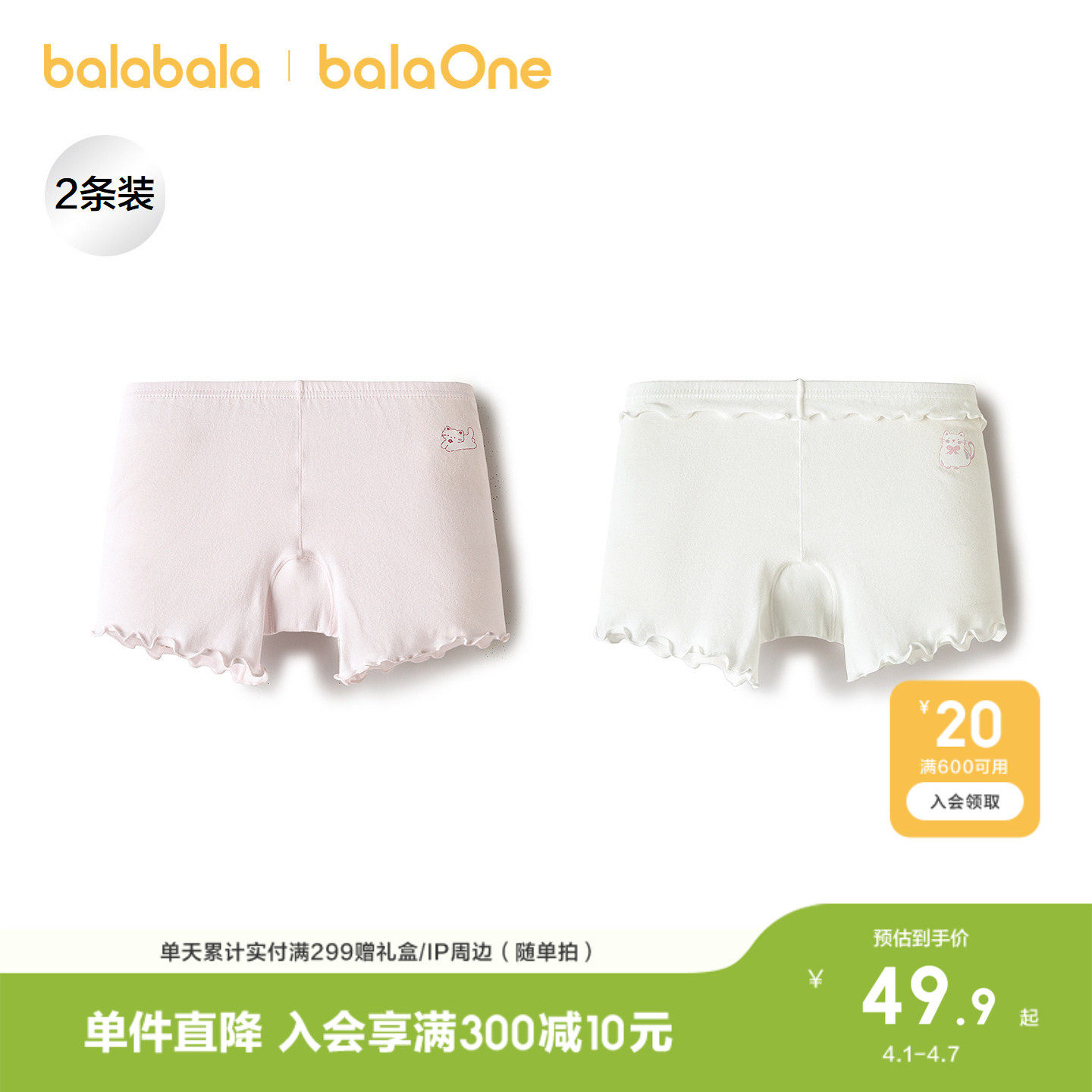 巴拉巴拉女童内裤平角裤宝宝安全裤防走光儿童短裤四角抗菌两条装