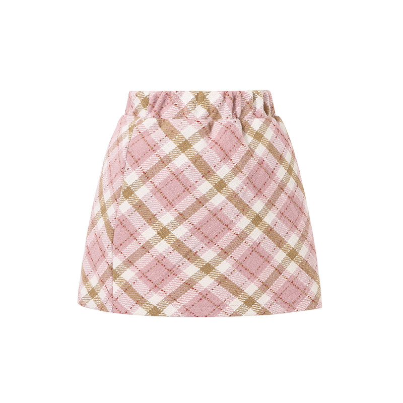 女童粉色格纹半身裙2026秋冬高级感裙裤儿童裙子女孩包裙A字短裙7
