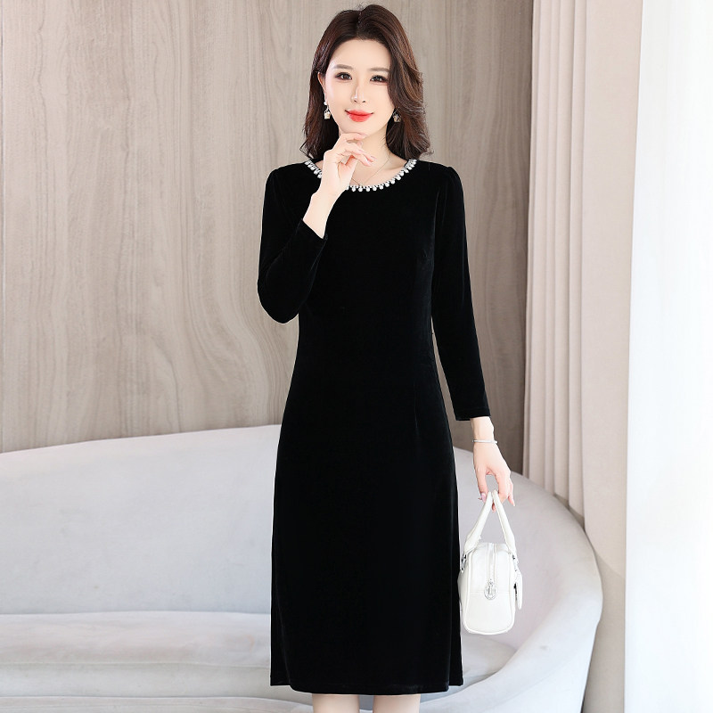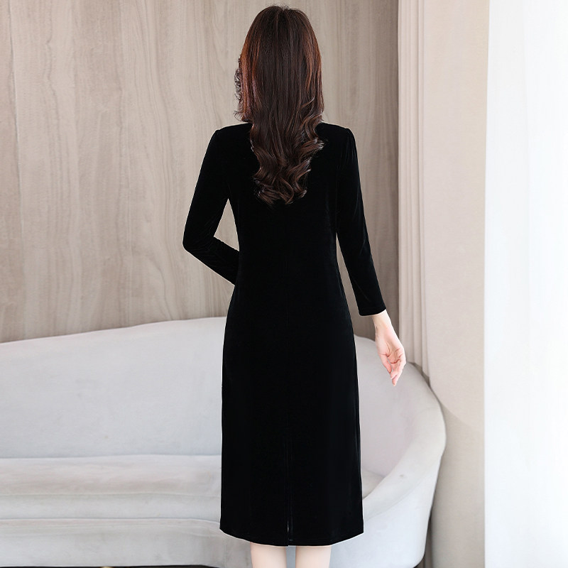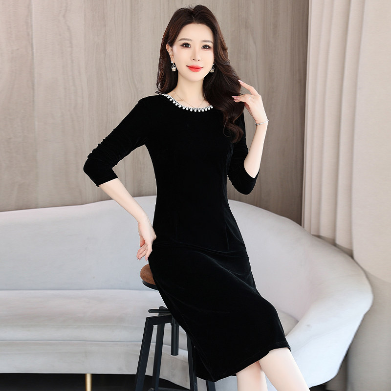 气质减龄金丝绒长袖连衣裙女春季2026新款修身显瘦中长款包臀裙子