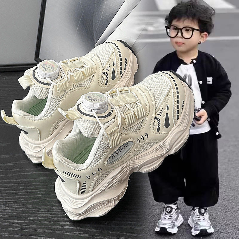 男童旋转纽扣运动鞋2026春夏新款儿童网面老爹鞋透气女童跑步鞋潮