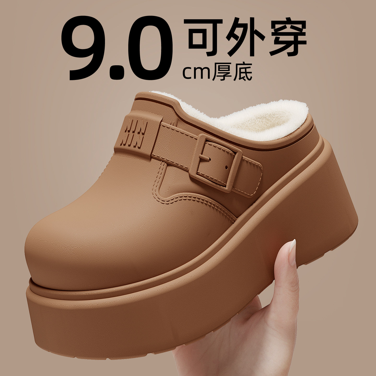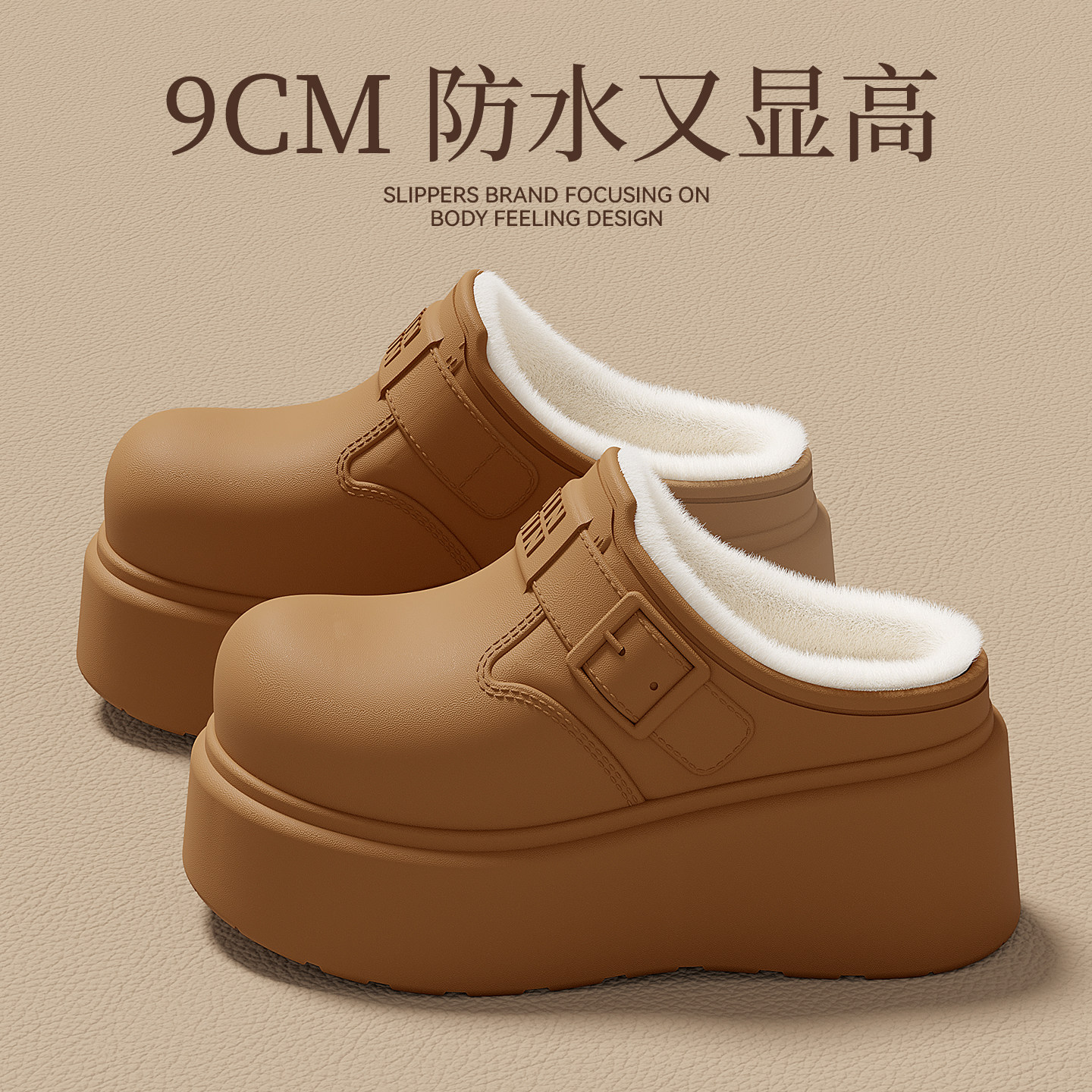 厚底增高防水棉拖鞋女款2026新款秋冬季室内家居加绒保暖棉拖外穿