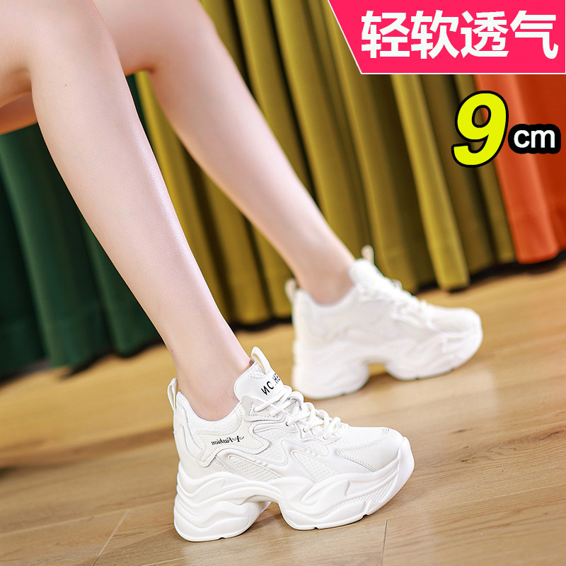 真皮夏季薄款厚底老爹鞋女2026新款百搭小白鞋内增高透气运动网鞋