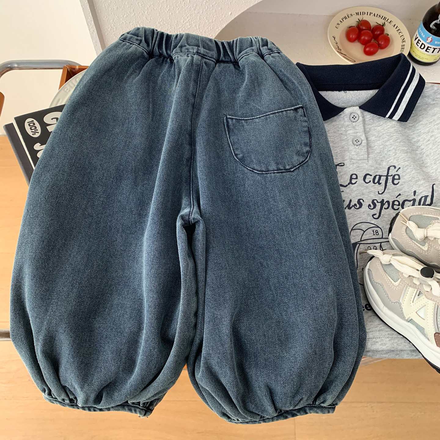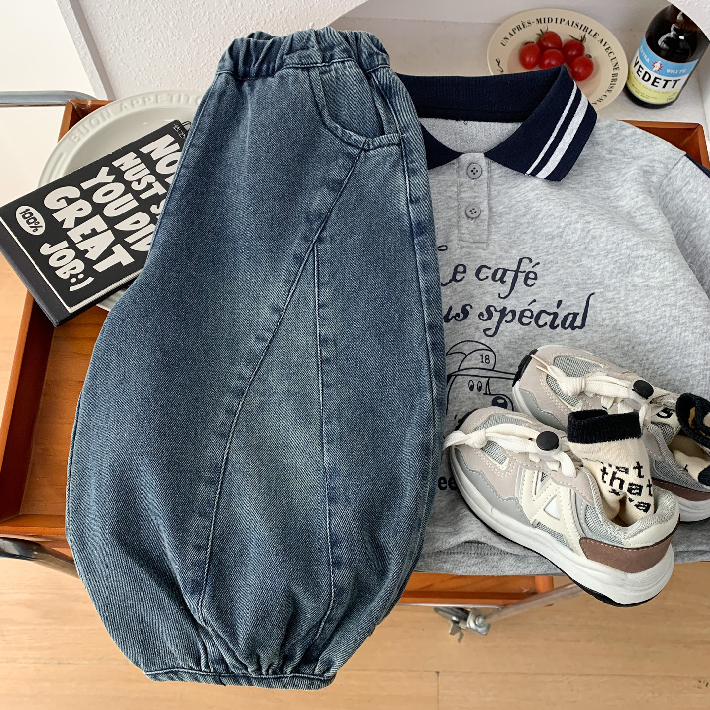 儿童牛仔灯笼裤2026春秋男女童韩版宽松休闲裤帅气男孩森系哈伦裤