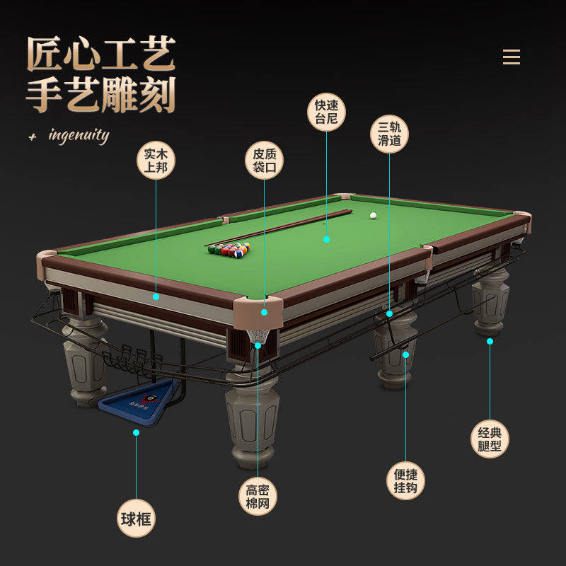 美式中式标准型台球桌黑八成人台桌球家用商用台球乒乓球台二合一