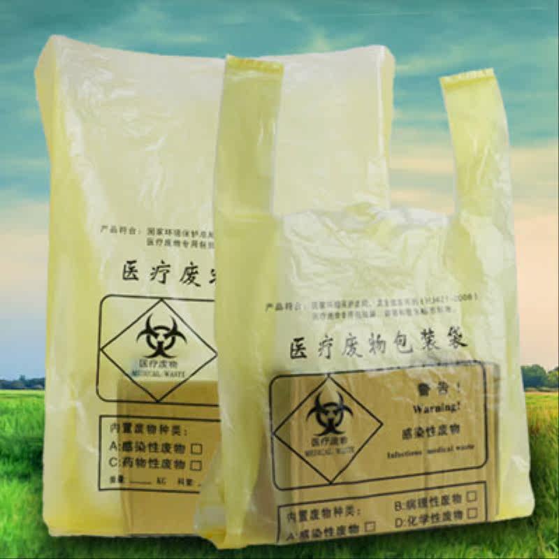 黄色加厚医疗垃圾袋加厚5丝医用垃圾袋包装袋实验室废弃物加厚手提背心塑料袋黄色医废塑料大号袋 100只/包