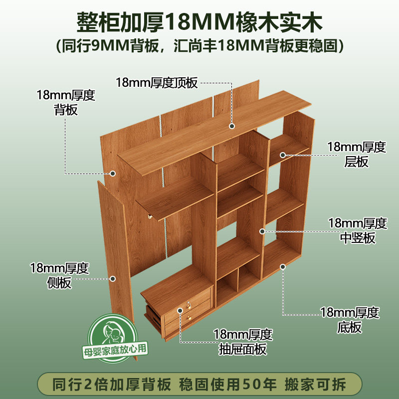 全实木橡木顶柜ENF级收纳柜置物柜全屋衣柜储物柜子可定制尺寸