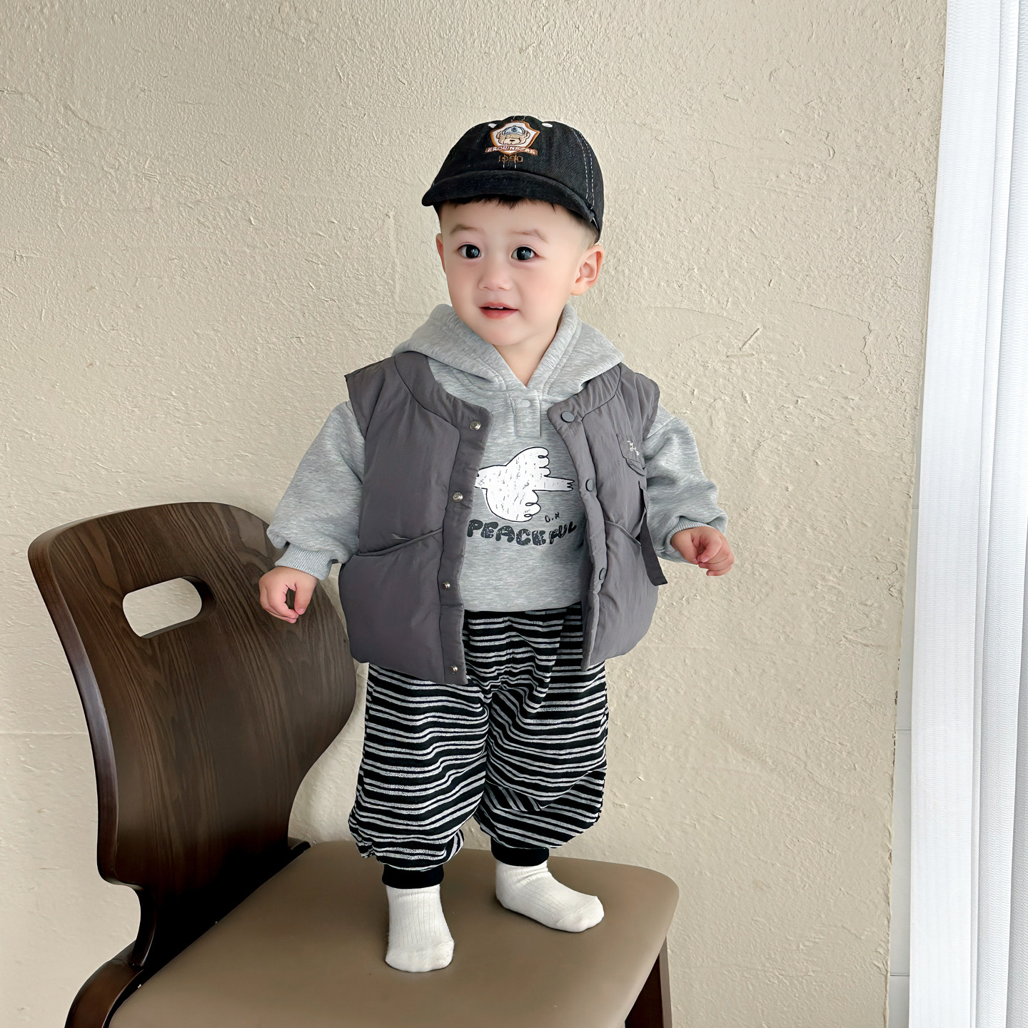 韩版穿搭帅气男宝宝卫衣加绒休闲裤子马甲三件套小童冬装分体冬季