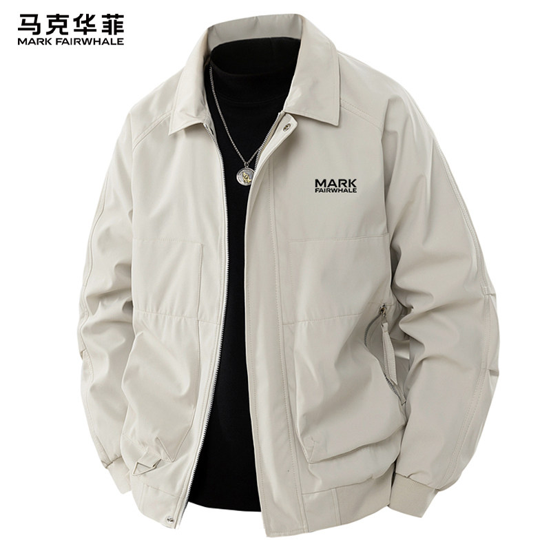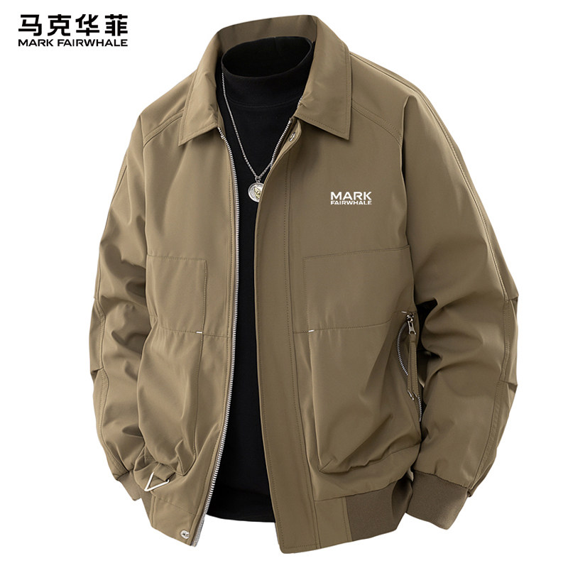 马克华菲2026新款翻领夹克男款春季工装风宽松短款黑色外套上衣