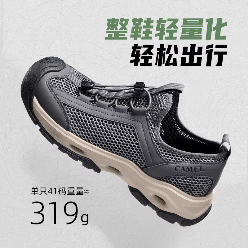 骆驼男鞋2026新款夏季轻盈透气休闲网面鞋户外登山鞋徒步溯溪鞋男