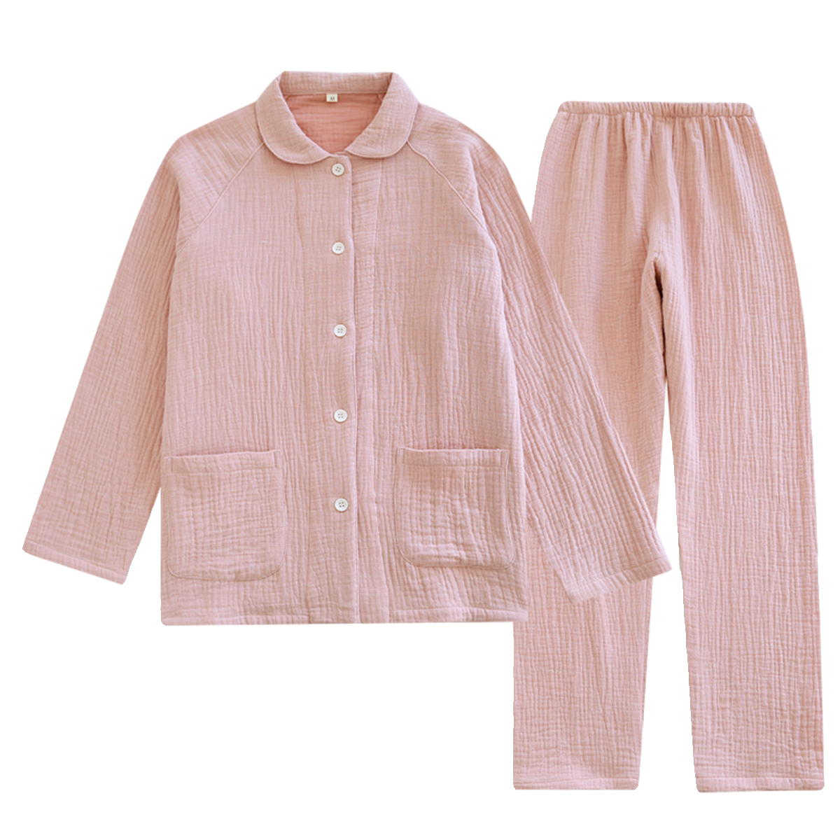 清库加厚四层纯棉纱无印风新款情侣睡衣女士甜美日系男家居服套装