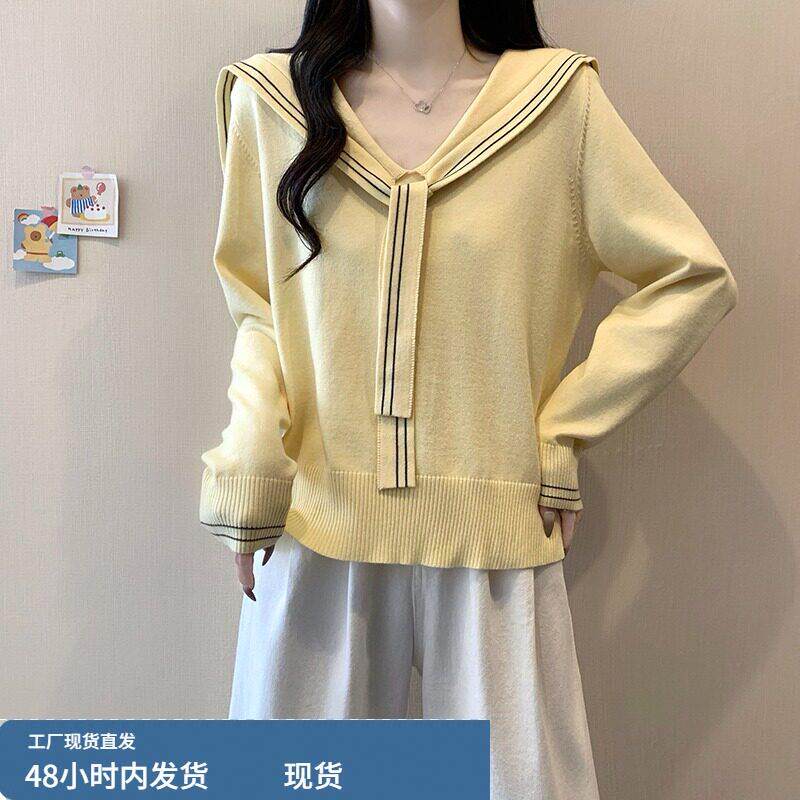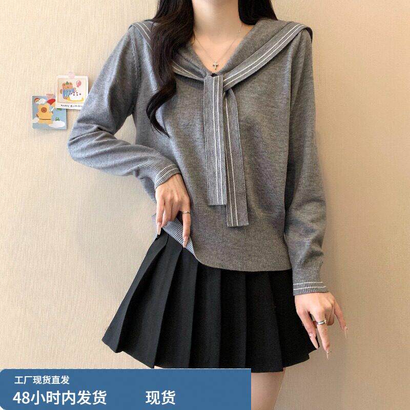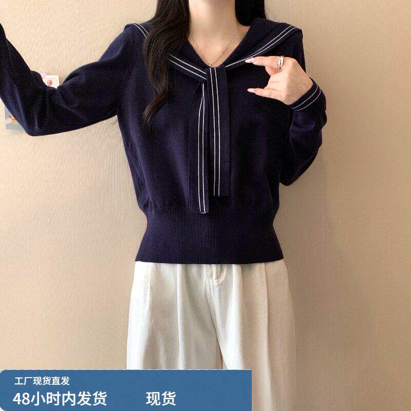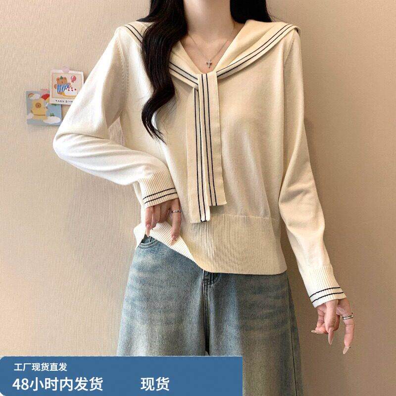 春装女款2026年新款爆款海军领针织衫绝美巨好看短款长袖上衣早春